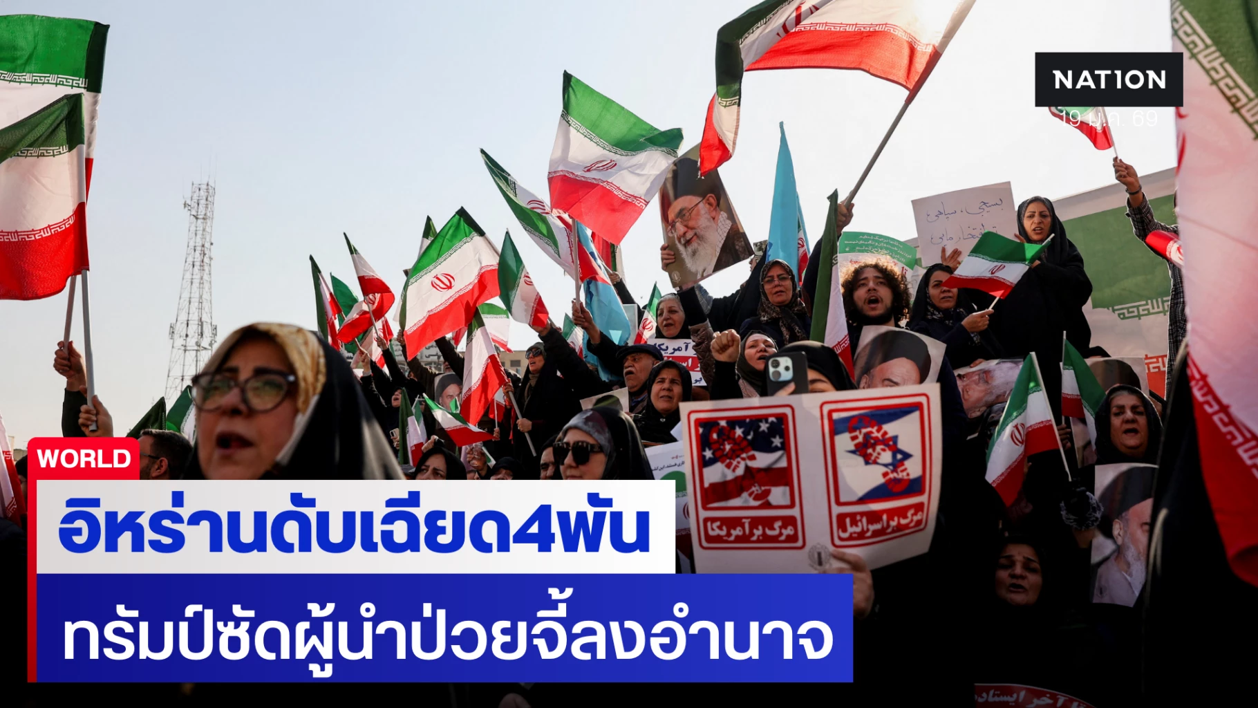 หน่วยงานสิทธิฯ อัปเดตยอดผู้เสียชีวิตจากการประท้วงในอิหร่านพุ่งสูงถึง 3,919 ราย ด้านผู้นำสูงสุดอิหร่านยอมรับตายหลายพันแต่โบ้ยสหรัฐฯ เป็นต้นเหตุ ขณะที่ "ทรัมป์" สวนกลับแรงเรียกคาเมเนอีเป็น "คนป่วย" พร้อมจี้ให้ยุติการสังหารประชาชนและก้าวลงจากอำนาจ