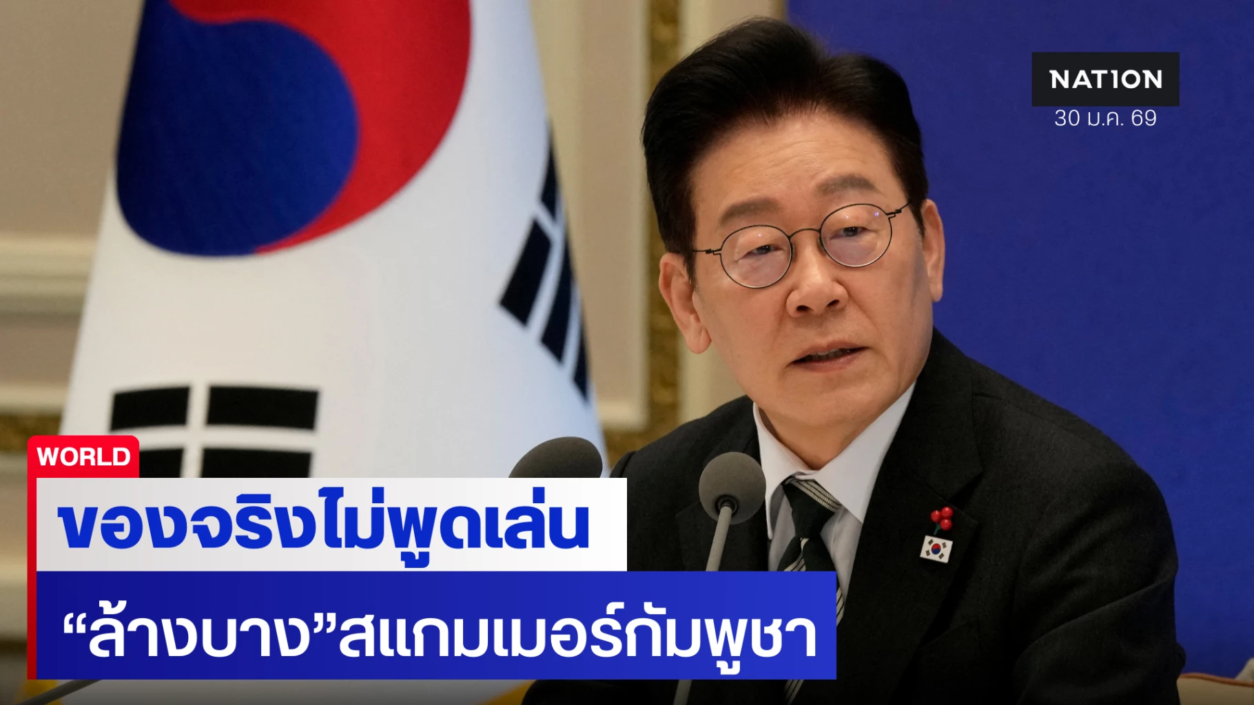 ประธานาธิบดี อี แจมยอง แห่งเกาหลีใต้ ยกระดับคำเตือนถึงกลุ่มอาชญากรข้ามชาติที่ใช้กัมพูชาเป็นฐานปฏิบัติการฉ้อโกงชาวเกาหลีใต้ โดยโพสต์ข้อความผ่านบัญชี X (Twitter) ส่วนตัวทั้งภาษาเกาหลีและภาษาเขมรเมื่อเช้าวันศุกร์ที่ 30 มกราคม 2569 ยืนยันว่ารัฐบาลโซลจะตามล่าและทำลายเครือข่ายมิจฉาชีพเหล่านี้ให้สิ้นซาก หลังจากที่ผ่านมาได้ดำเนินการส่งตัวผู้ร้ายข้ามแดนกลับไปดำเนินคดีอย่างต่อเนื่อง