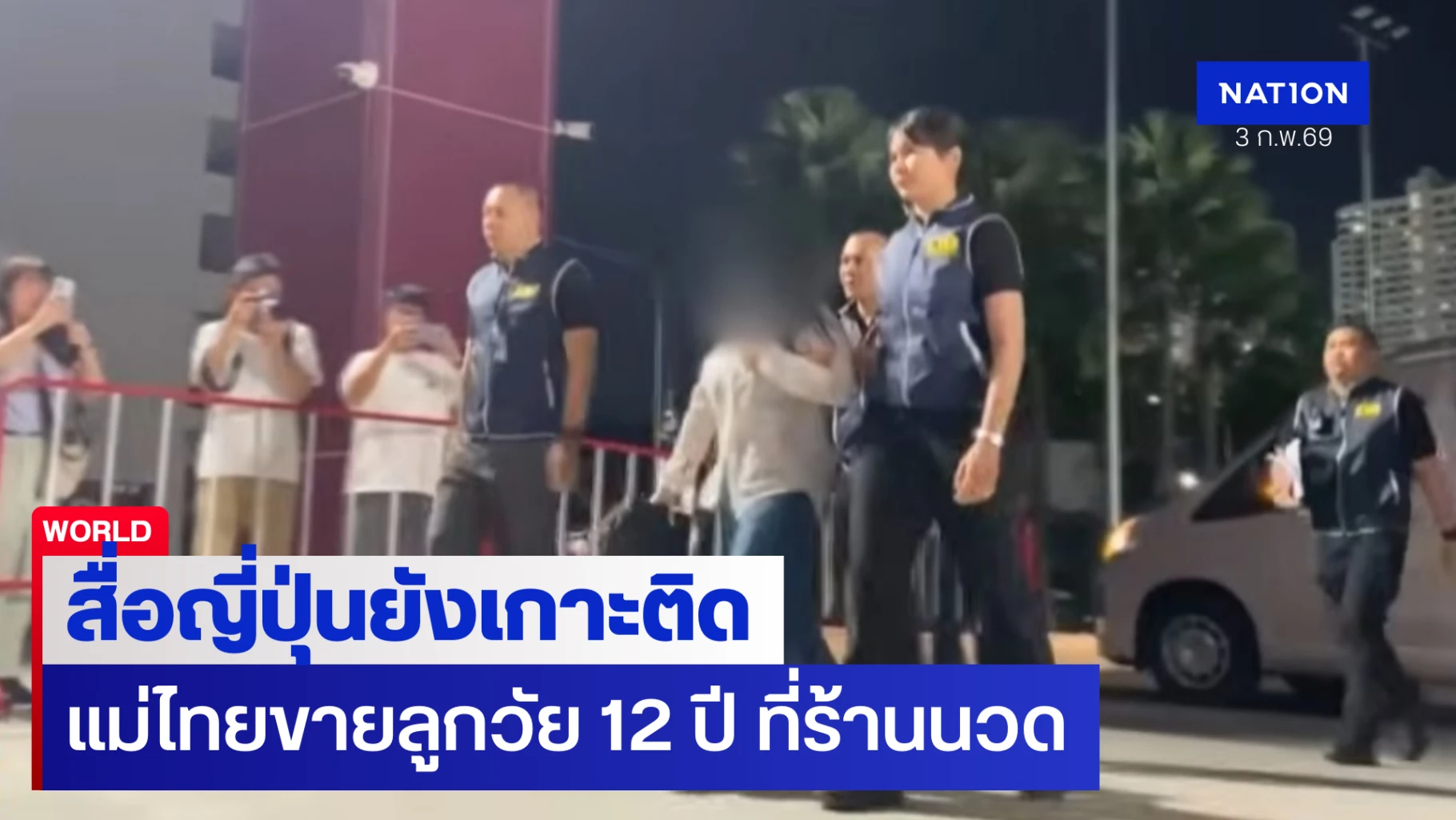 3 กุมภาพันธ์ 2569 สื่อญี่ปุ่นยังคงนำเสนอรายงานพิเศษ เกี่ยวกับแม่ชาวไทย ที่พาลูกสาวที่เป็นเพียงเด็กหญิงวัย 12 ปี ไปขายบริการที่ร้านนวด "รีแล็กซ์ ไทม์" (Relax time) ในกรุงโตเกียว โดยล่าสุดได้สัมภาษณ์ผ่านญาติ พร้อมกับร้องไห้เสียใจตลอดเวลา ยอมรับว่า "ไม่น่าพาลูกไปญี่ปุ่นเลย ทุกอย่างผิดที่ฉันเอง เสียใจอย่างมาก"