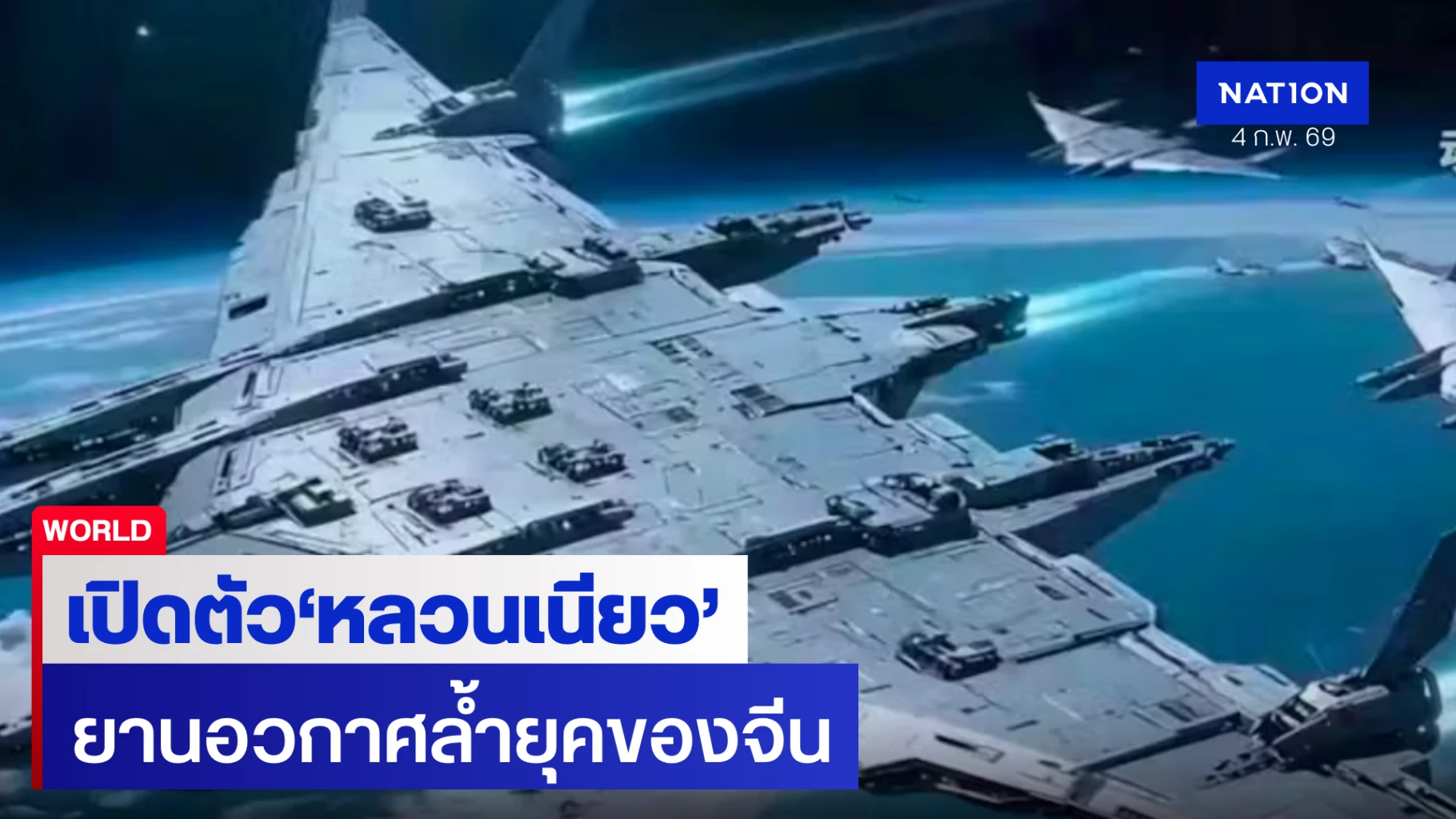 จีนเผยโฉม "หลวนเนียว" เรือบรรทุกเครื่องบินอวกาศยักษ์ ล้ำยุคราว Star Wars