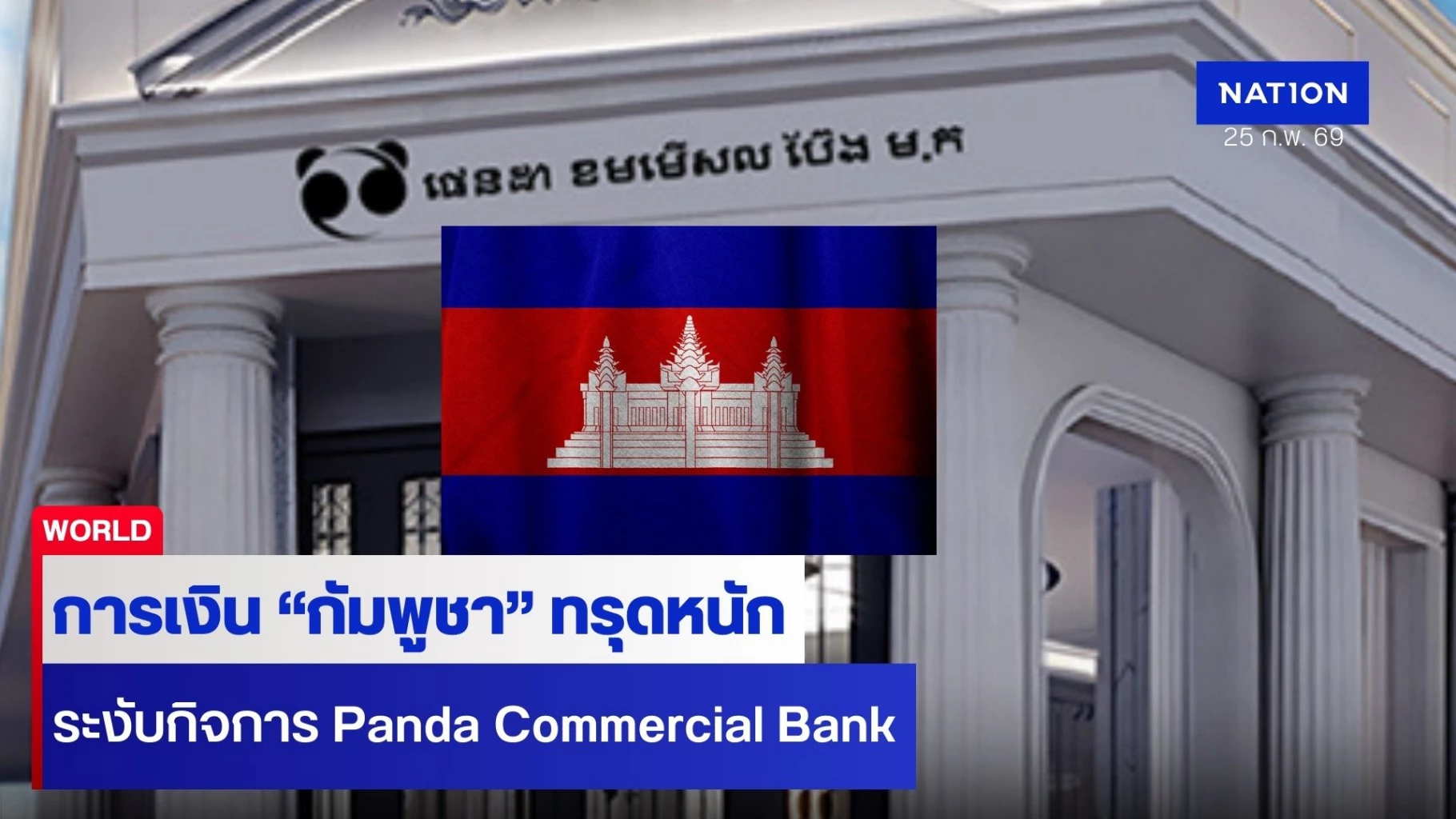 25 กุมภาพันธ์ 2569 สื่อต่างชาติ "สำนักข่าวซินหัว" รายงานว่า ธนาคารแห่งชาติกัมพูชา หรือ ธนาคารกลางของกัมพูชา ประกาศระงับการดำเนินงานของ "แพนด้า คอมเมอร์เชียล แบงก์" (Panda Commercial Bank)