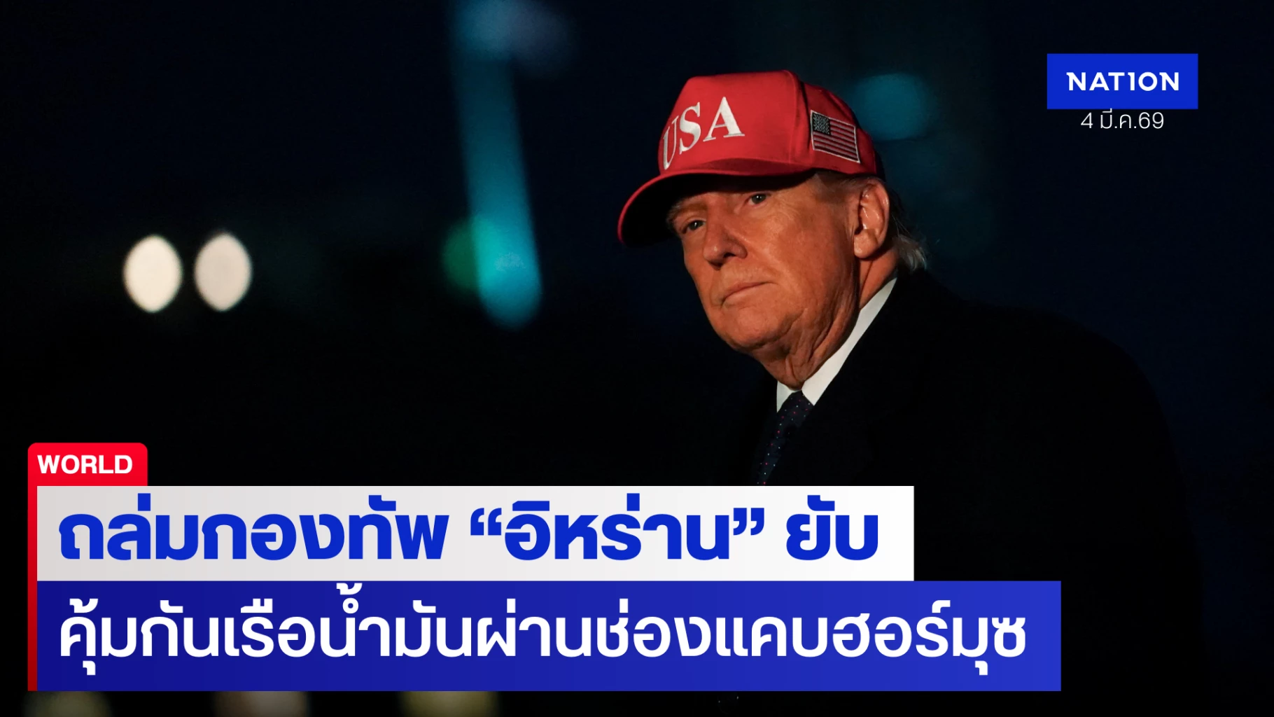 4 มีนาคม 2569 สถานการณ์สงครามในตะวันออกกลางทวีความรุนแรง ล่าสุดประธานาธิบดีโดนัลด์ ทรัมป์ อ้างความสำเร็จในการทำลายกองทัพอิหร่าน ขณะที่สหรัฐฯ เร่งยกระดับการคุ้มครองเรือบรรทุกน้ำมันผ่านจุดยุทธศาสตร์สำคัญ