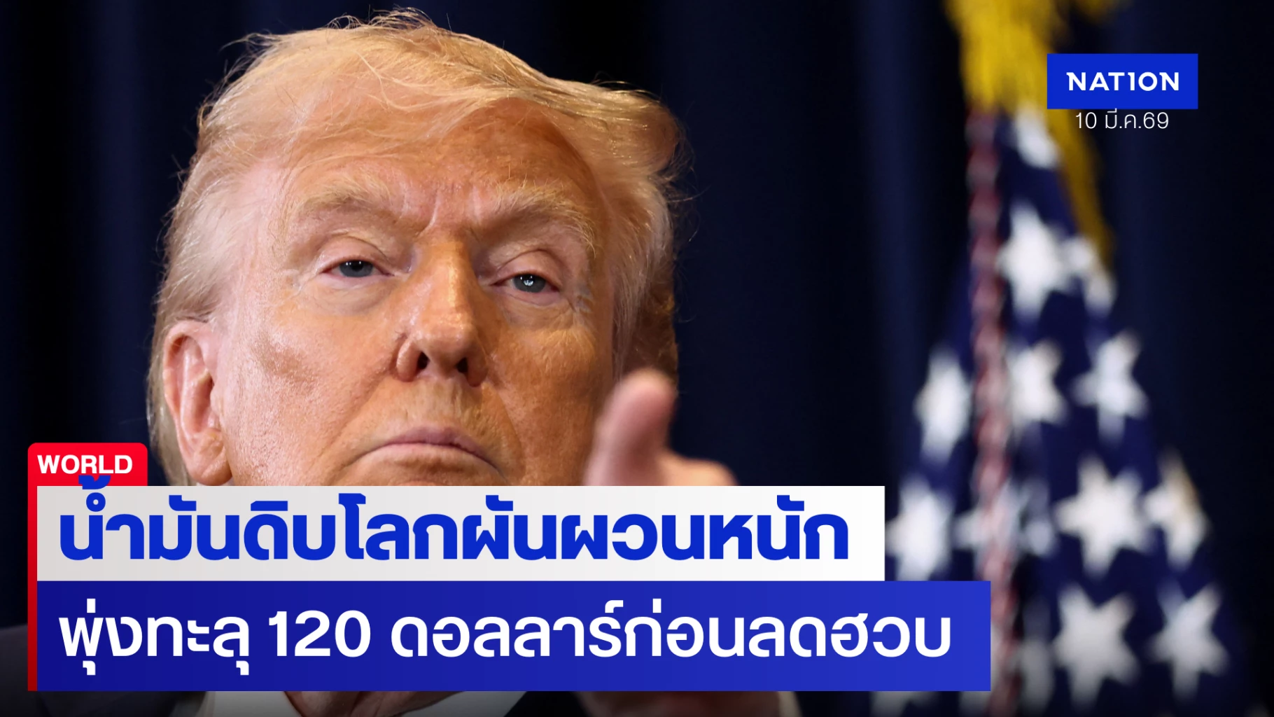 น้ำมันดิบโลกผันผวนหนัก ราคาพุ่งทะยานเกือบแตะ 120 ดอลลาร์ ก่อนจะดิ่งลงอย่างรวดเร็ว หลัง "ทรัมป์" ส่งสัญญาณ ประกาศพิจารณายึด "ช่องแคบฮอร์มุซ"