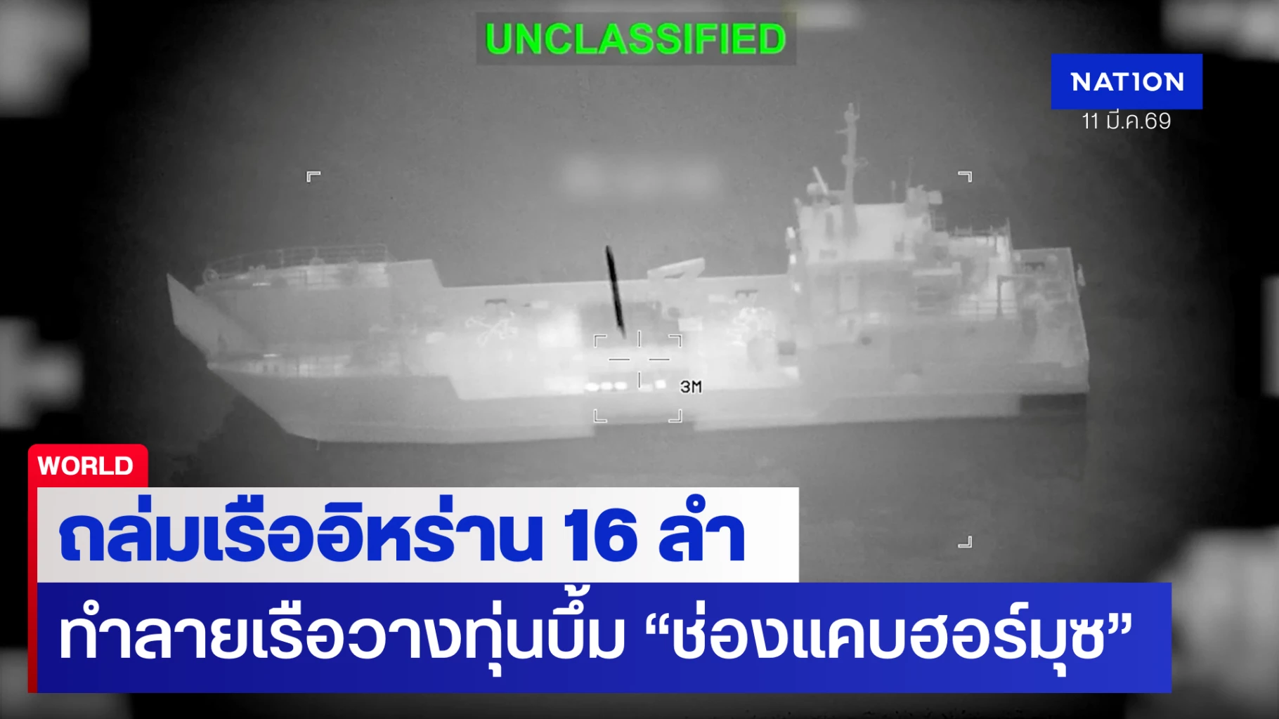 11 มีนาคม 2569 สำนักข่าว CNN รายงานอ้างโพสต์บนโซเชียลมีเดีย ของศูนย์บัญชาการกลางสหรัฐฯหรือ เซนต์คอม (CENTCOM) ว่า ได้ทำลายเรือรบ ตลอดจนเรือวางทุ่นระเบิด 16 ลำ ใกล้กับช่องแคบฮอร์มุซ หลังแหล่งข่าวด้านข่าวกรอง ระบุว่า กองกำลังพิทักษ์ปฏิวัติอิสลามของอิหร่าน หรือ IRGC ที่ควบคุมช่องแคบแห่งนี้ ร่วมกับกองทัพเรือของอิหร่าน ได้เริ่มวางทุ่นระเบิดในเส้นทางน้ำแห่งนี้ ที่เป็นจุดขนส่งพลังงานที่สำคัญที่สุดของโลก โดยมีน้ำมันดิบประมาณ 1 ใน 5 ของปริมาณทั้งหมดไหลผ่าน