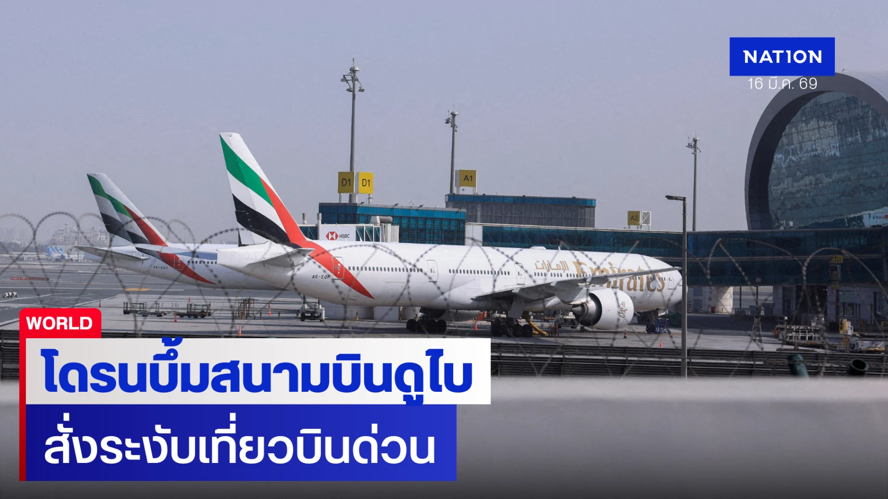 การระงับเที่ยวบิน: สายการบินเอมิเรตส์ (Emirates) ประกาศระงับเที่ยวบินเข้าและออกดูไบทั้งหมดทันที