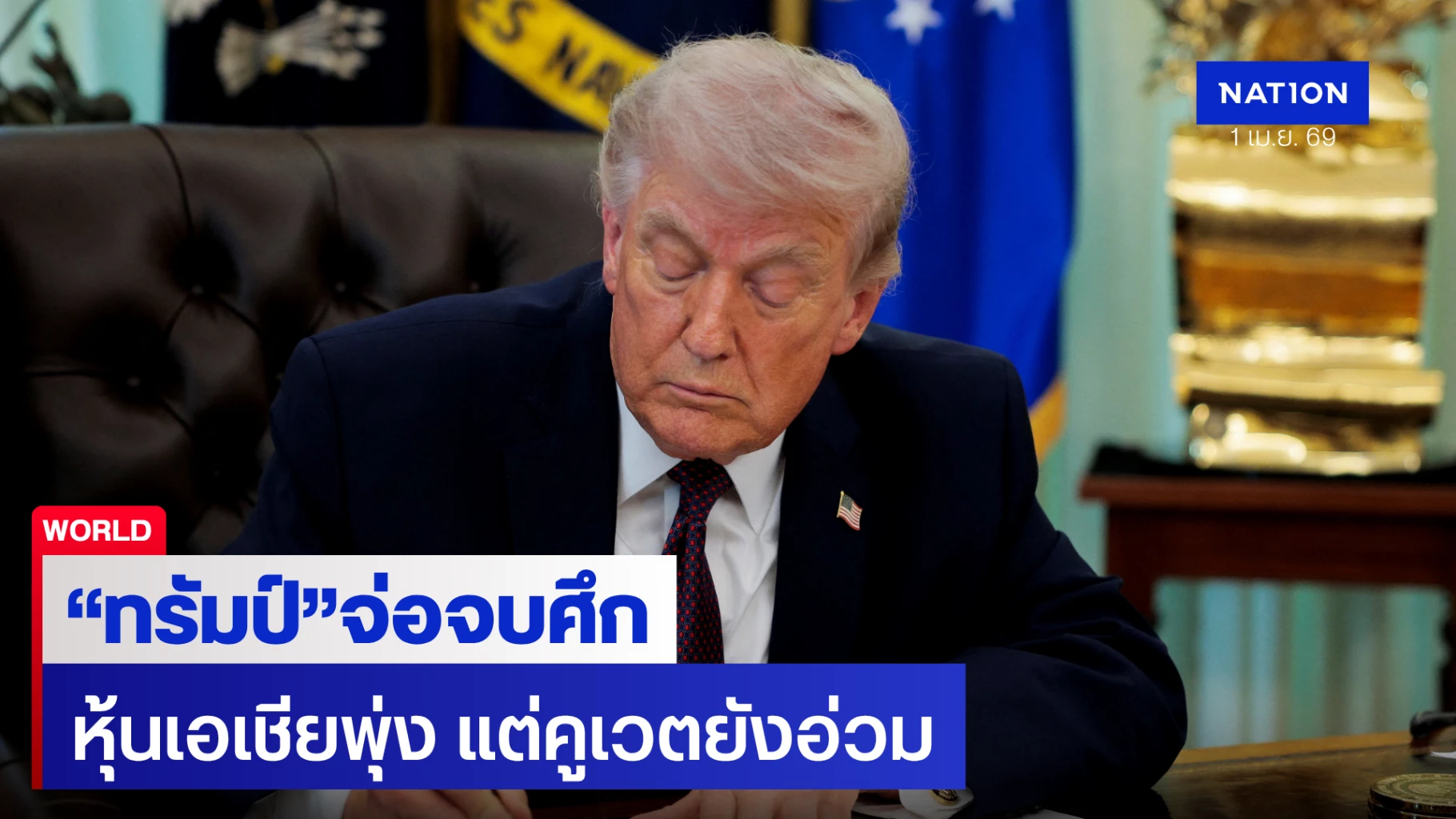 คำแถลงของทรัมป์กลายเป็นน้ำทิพย์ชโลมใจนักลงทุน ส่งผลให้ตลาดหุ้นเอเชียเช้านี้ (1 เม.ย.) ดีดตัวขึ้นอย่างรุนแรง