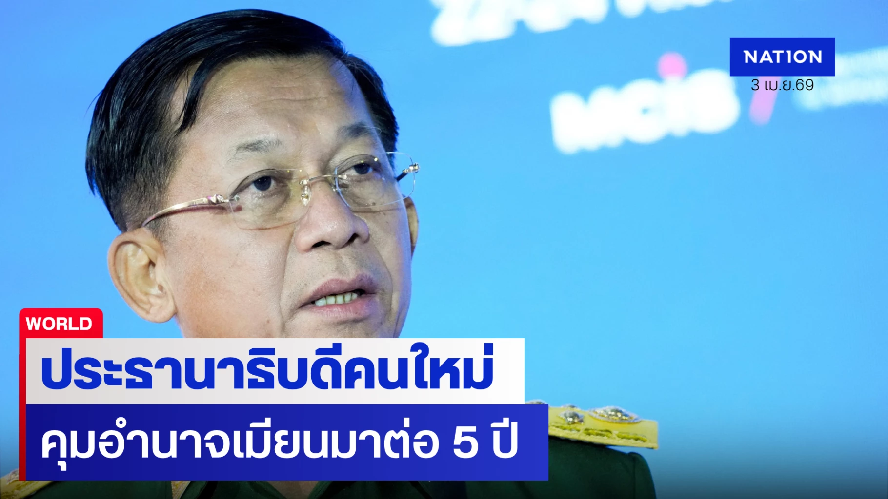 3 เมษายน 2569 รัฐสภาเมียนมา (Pyidaungsu Hluttaw) ได้เลือกพลเอกอาวุโส มิน อ่อง หล่าย ผู้โค่นอำนาจรัฐบาลพลเรือนของออง ซาน ซู จี ในปี 2564 และกุมอำนาจอย่างเบ็ดเสร็จตลอด 5 ปีที่ผ่านมา ขึ้นดำรงตำแหน่งประธานาธิบดีของประเทศอย่างเป็นทางการ หลังลาออกจากตำแหน่งผู้บัญชาการทหารสูงสุด เพื่อกุมอำนาจต่อไปอีก 5 ปี