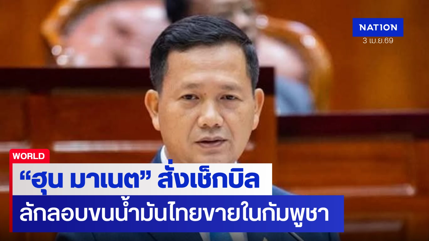 นายกรัฐมนตรีกัมพูชา “ฮุน มาเนต” สั่งสอบด่วนปมสื่อไทยแฉขบวนการลักลอบขนน้ำมันไทยขายในกัมพูชา ยันหากพบ จนท.รัฐ หรือกองทัพเกี่ยวข้องสั่งไล่ออกทันที เผยระงับนำเข้าน้ำมันจากไทยตั้งแต่ มิ.ย. 68 แล้ว