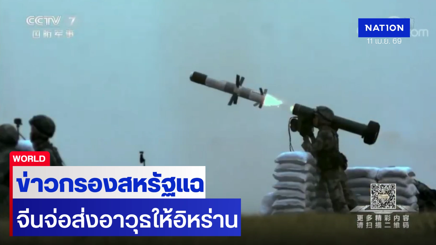 11 เมษายน 2569 รายงานเอ็กซ์คลูซีฟของสำนักข่าว CNN ที่อ้างหน่วยข่าวกรองของสหรัฐฯ ระบุว่า จีนกำลังเตรียมจัดส่งอาวุธ ระบบป้องกันภัยทางอากาศใหม่ให้กับอิหร่าน ภายในอีกไม่กี่สัปดาห์ข้างหน้า ซึ่งน่าจะเป็นการเคลื่อนไหวที่ยั่วยุ เนื่องจากจีนอ้างตัวว่า มีส่วนช่วยในการไกล่เกลี่ยข้อตกลงหยุดยิงที่เปราะบาง ซึ่งระงับสงครามระหว่างอิหร่านและสหรัฐฯ เมื่อต้นสัปดาห์นี้ และประธานาธิบดีโดนัลด์ ทรัมป์ ของสหรัฐฯ ก็มีกำหนดเยือนจีนต้นเดือนหน้า เพื่อประชุมสุดยอดกับประธานาธิบดีสีจิ้นผิง