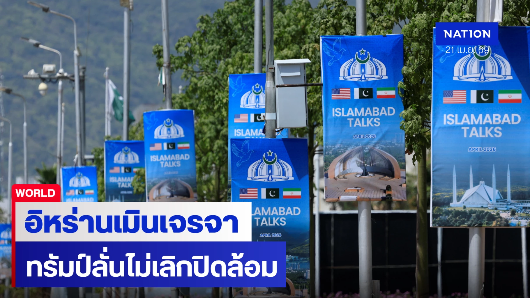 ความพยายามทางการทูตเพื่อยุติสงครามระหว่างสหรัฐฯ-อิสราเอล และอิหร่าน ตกอยู่ในสภาวะไม่แน่นอนในวันนี้ (21 เมษายน 2569) เพียงหนึ่งวันก่อนครบกำหนดเส้นตายข้อตกลงหยุดยิงชั่วคราว โดยเตหะรานประกาศกร้าวว่าจะไม่เจรจาภายใต้ "เงาแห่งการข่มขู่" ขณะที่ประธานาธิบดีโดนัลด์ ทรัมป์ ยืนกรานจะใช้มาตรการปิดล้อมทางเรือต่อไปจนกว่าจะบรรลุข้อตกลง