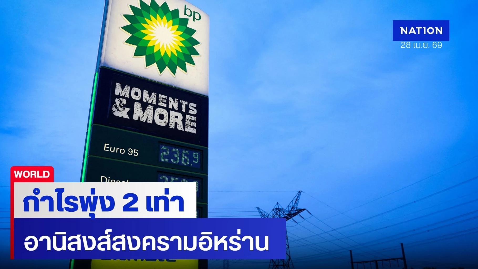 BP กำไรพุ่ง 2 เท่า ผลพวงจากสงครามอิหร่าน ดันราคาน้ำมันโลกพุ่ง