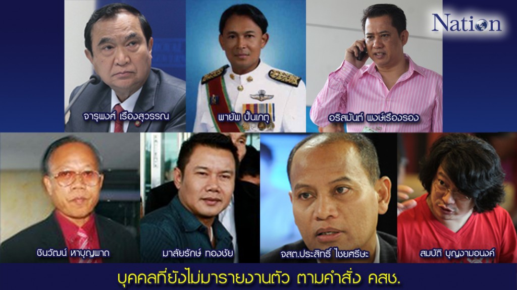 1. จารุพงศ์ เรืองสุวรรณ (อดีต มท.1) 2. พายัพ ปั้นเกตุ (อดีต ส.ส.เพื่อไทย) . 3. อริสมันต์ พงษ์เรืองรอง (แกนนำ นปช. )4. ชินวัฒน์ หาบุญพาด (อดีต ส.ส.เพื่อไทย) .5. มาลัยรักษ์ ทองชัย (แกนนำ กวป.)6. จสต.ประสิทธิ์ ไชยศรีษะ (อดีต ส.ส.เพื่อไทย) .7. สมบัติ บุญงามอนงค์ (บก.ลายจุด)