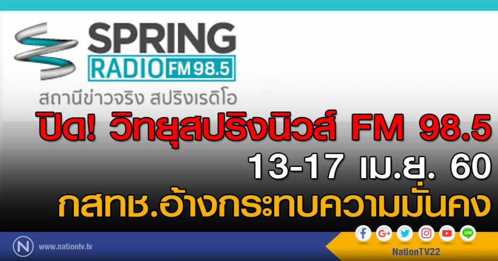 นายฐากร ตัณฑสิทธิ์ เลขาธิการ กสทช. เปิดเผยว่า สำนักงาน กสทช. สั่งระงับการออกอากาศชั่วคราวสถานีวิทยุ 1 ปณ FM 98.5 MHz ตั้งแต่เวลา 00.01 น. ของวันที่ 13 เม.ย. 2560 จนถึงวันที่ 17 เม.ย. 2560 เวลา 24.00 น. เนื่องจากได้รับการร้องเรียนเกี่ยวกับเนื้อหารายการที่ออกอากาศ ไม่เหมาะสมซึ่งอาจกระทบต่อความมั่นคงและความสงบเรียบร้อย โดยในขณะที่มีการตรวจสอบจึงมีคำสั่งให้ระงับการออกอากาศชั่วคราวไปก่อน