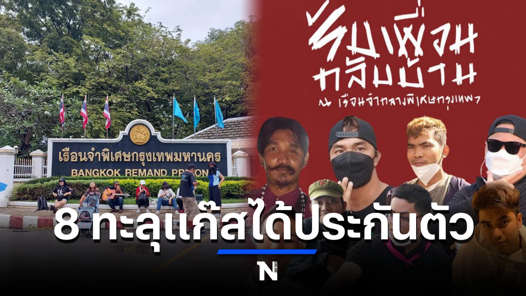 ซึ่งภายหลังทาง เพจ ทะลุแก๊ซ - Thalugaz ได้รายงานว่า วันนี้ทะลุแก๊สทั้ง 8 คน ดิว สมชาย ภูมิ ศศลักษณ์ หยก วรวุฒิ ลูกหิน อัครพล โอม ใบบุญ หนึ่ง เกตุสกุล ใหญ่ พิชัย และคิม ธีรวิทย์ ได้รับการประกันตัว หากไม่มีอะไรเปลี่ยนแปลง รอรับเพื่อนกลับบ้านได้ที่เรือนจำพิเศษกรุงเทพมหานคร