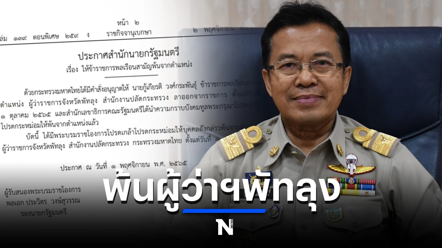 บัดนี้ ได้มีพระบรมราชโองการโปรดเกล้าโปรดกระหม่อมให้บุคคลดังกล่าวพ้นจากตำแหน่ง "ผู้ว่าราชการจังหวัดพัทลุง" สำนักงานปลัดกระทรวง กระทรวงมหาดไทย ตั้งแต่วันที่ ๑ ตุลาคม ๒๕๖๕