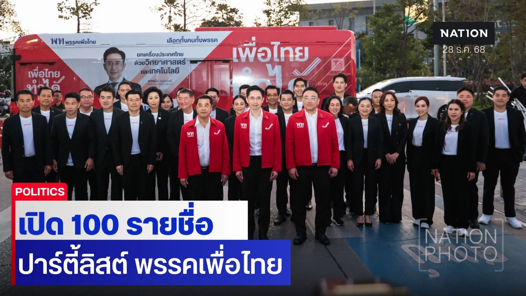 28 ธันวาคม 2568 พรรคเพื่อไทย เปิดรายชื่อ สส.ปาร์ตี้ลิสต์ 100 รายชื่อนำโดย นายจุลพันธ์ อมรวิวัฒน์ หัวหน้าพรรคเพื่อไทย , นายสุริยะ จึงรุ่งเรืองกิจ และ ดร.ยศชนัน วงศ์สวัสดิ์ นำทัพสู้ศึกเลือกตั้ง 2569