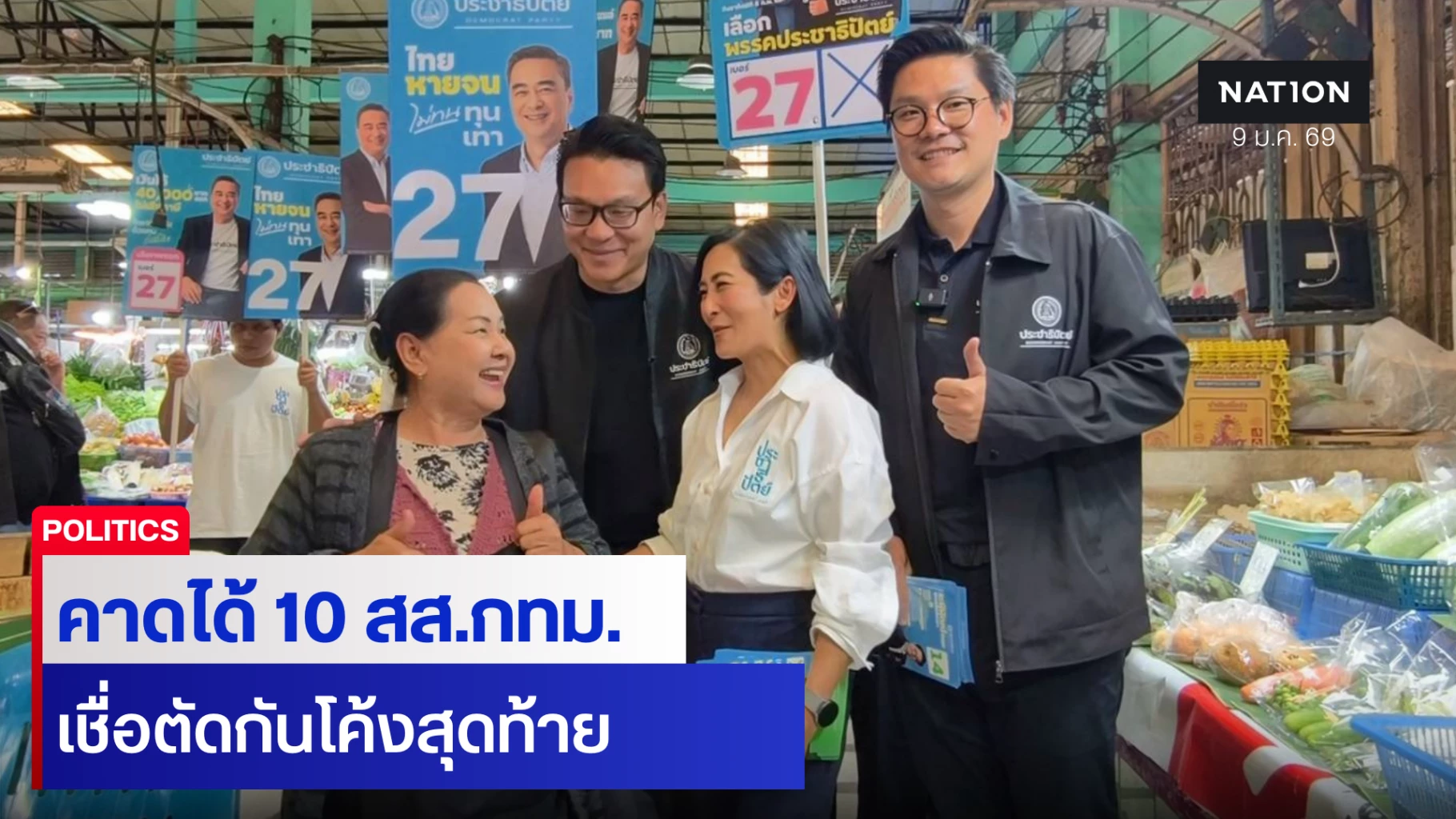 ประชาธิปัตย์ ลุยหาเสียง กทม.ชี้กระแสตอบรับดี มีโอกาสคว้าถึง 10 เก้าอี้ เชื่อวัดกันโค้งสุดท้าย ชูนโยบายค่ารถไฟฟ้า 5-30 บาทเอาใจคนกรุงฯ