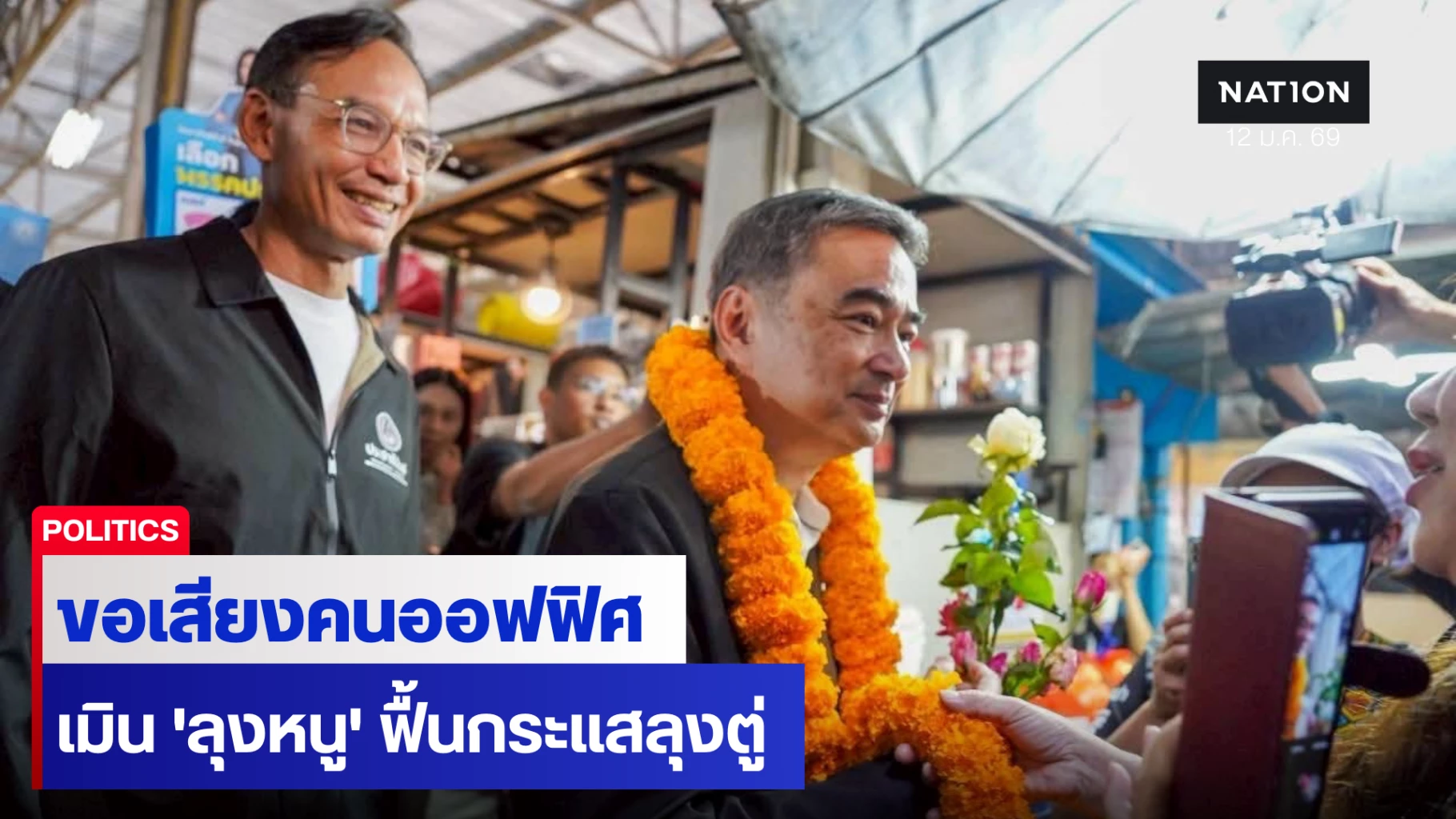 “อภิสิทธิ์“ หาเสียงย่านห้วยขวางขอคะแนนเสียงชาวออฟฟิศ - ชี้ผลโหวตโน อบต.ท่าชะมวง สะท้อนประชาชนมีทางเลือกไม่เอาสีเทา - เมิน ''อนุทิน'' ปลุกกระแส ''รักลุงตู่''