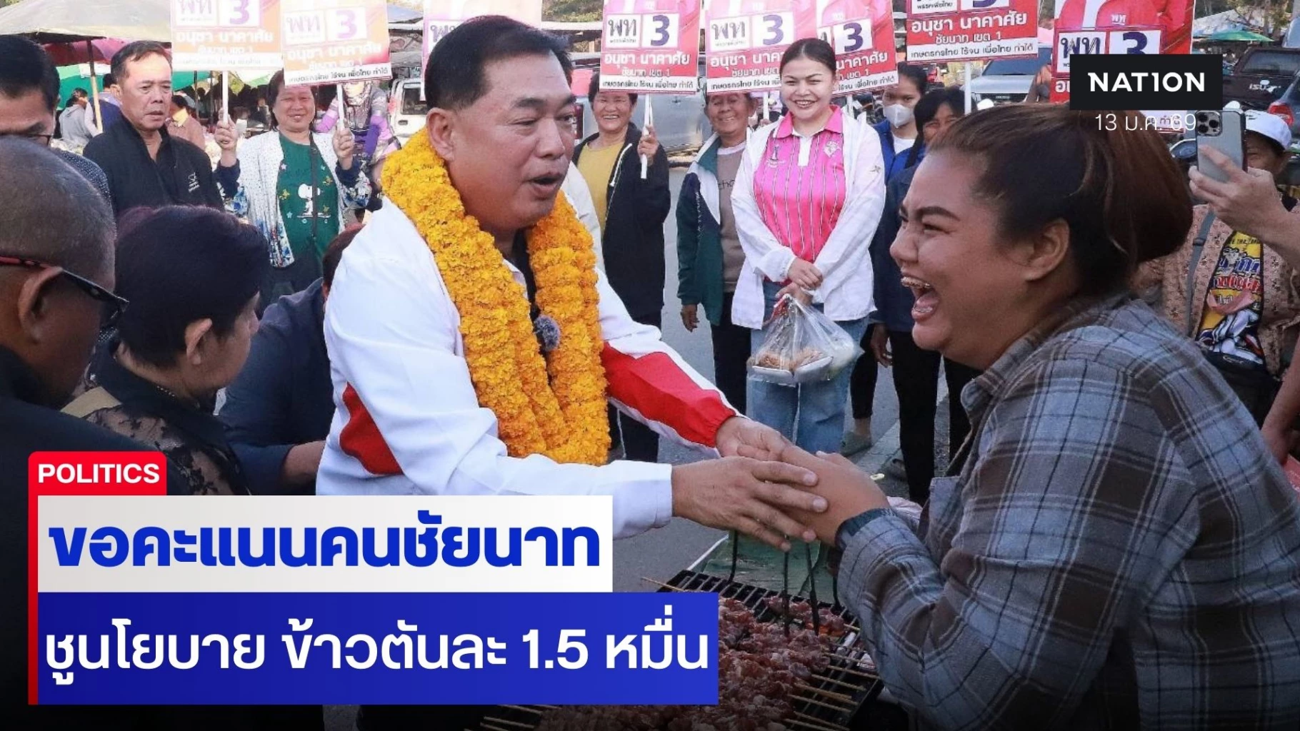 13 มกราคม 2569 ที่บริเวณ ตลาดสดเทศบาลเมืองชัยนาท อ.เมืองชัยนาท จ.ชัยนาท นายอนุชา นาคาศัย ผู้สมัคร สส.เขต 1 จ.ชัยนาท พรรคเพื่อไทย เบอร์3 พร้อมด้วยคณะทำงานและทีมหาเสียง ลงพื้นที่ พบปะพ่อค้าแม่ค้า และพี่น้องประชาชนชาว จ.ชัยนาท