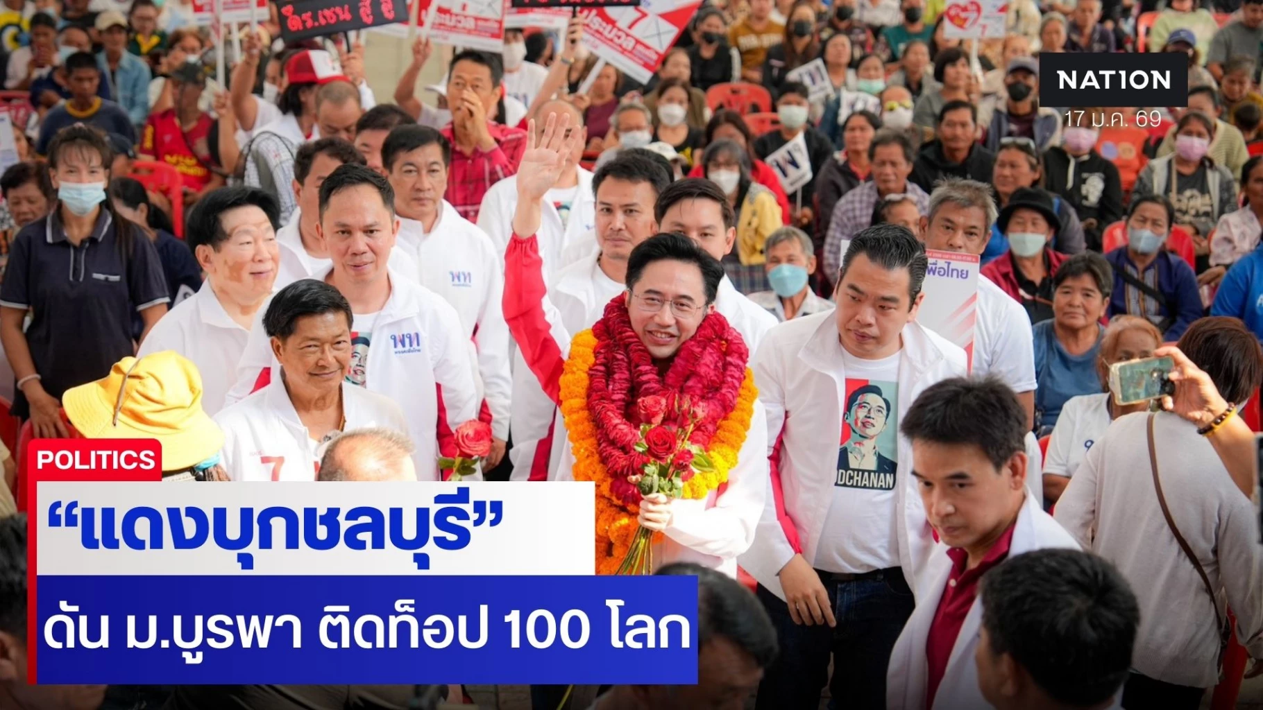 17 มกราคม 2569 ที่อำเภอพนัสนิคม จังหวัดชลบุรี พรรคเพื่อไทย นำโดย นายยศชนัน วงศ์สวัสดิ์ แคนดิเดตนายกรัฐมนตรี พร้อมด้วย นายณัฐวุฒิ ใสยเกื้อ ผู้อำนวยการครอบครัวเพื่อไทย เดินทางมาจัดกิจกรรมพบปะประชาชนและเปิดเวทีปราศรัย ณ หอประชุมเทศบาลเมืองพนัสนิคม (โรงไม้ขีดเก่า) โดยมีประชาชนในพื้นที่เดินทางมาร่วมรับฟังแนวนโยบาย และให้การต้อนรับอย่างล้นหลามจนเต็มพื้นที่หอประชุม