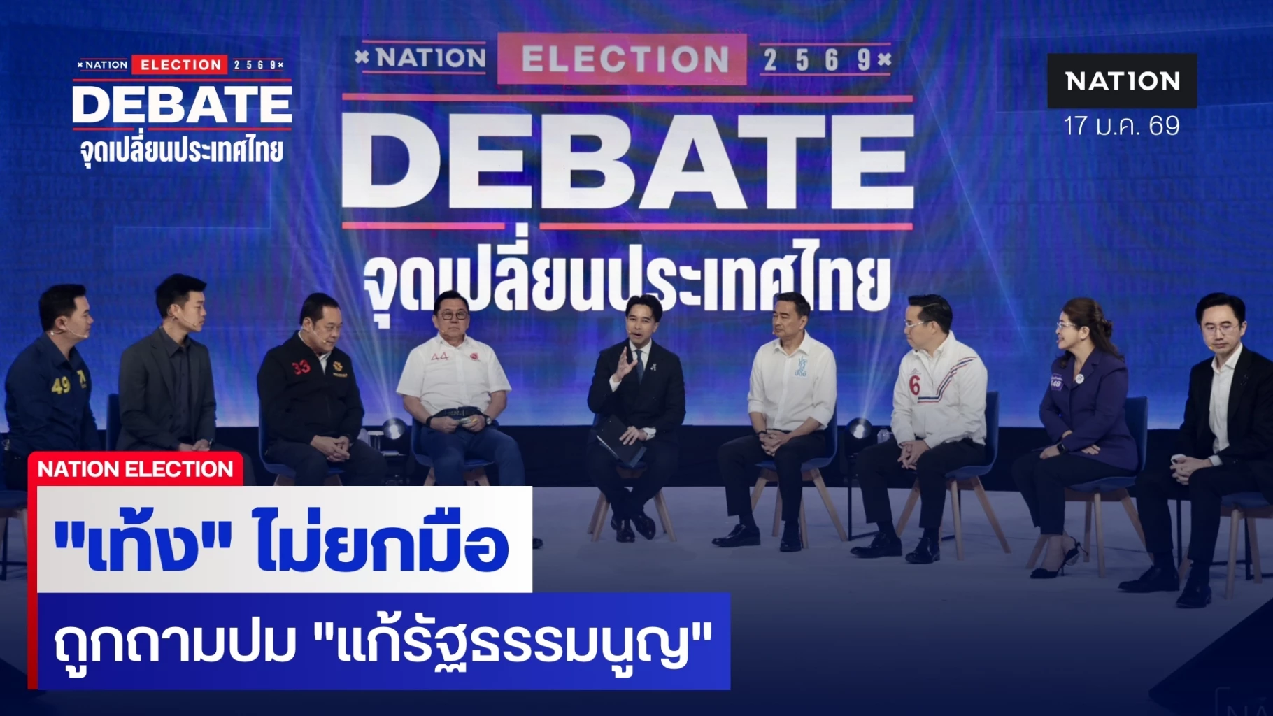 ทั้งนี้ บรรยากาศบนเวทีดีเบต ช่วงหนึ่งมีคำถามว่า พรรคไหนไม่เห็นด้วยในการแก้ไขรัฐธรรมนูญ หมวด 1 หมวด 2