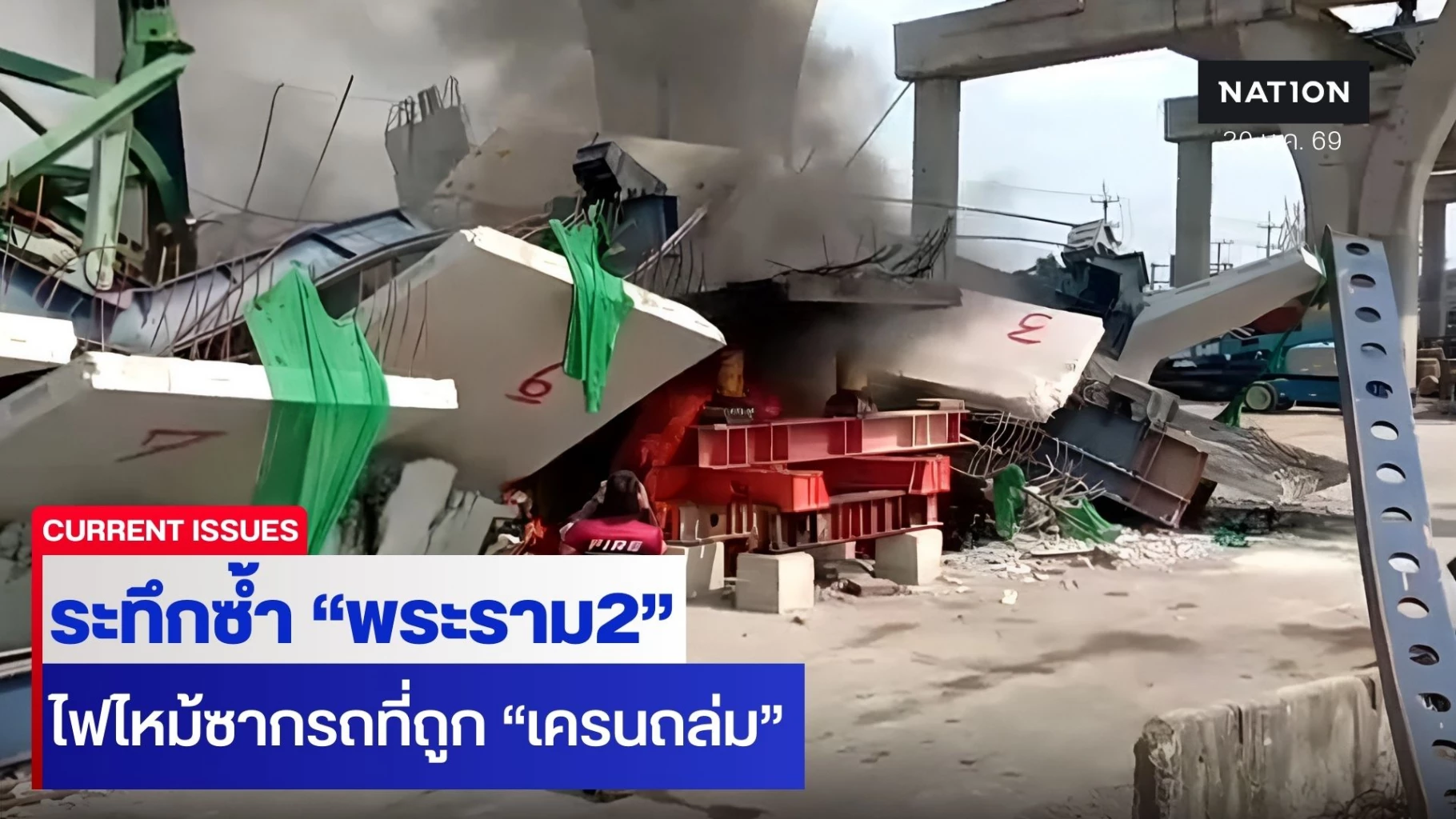 ด่วนเปิดคลิป! ระทึกซ้ำ "พระราม 2" ไฟไหม้ซากรถที่ถูก "เครนถล่ม" เร่งทำการดับ
