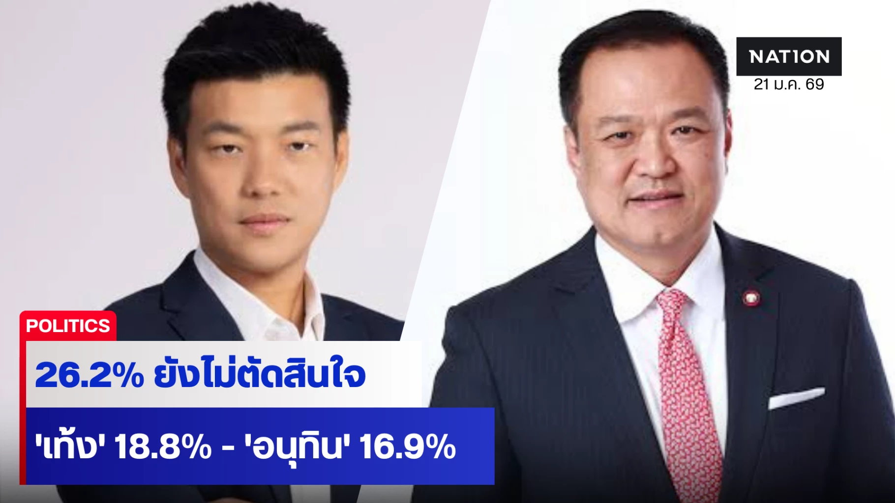 โพลสถาบันพระปกเกล้า เผยคนไทย 26.2% ยังไม่มีตัวเลือกนายกฯ ที่เหมาะสม "เท้ง" อันดับ 2 - "อนุทิน" อันดับ 3 - ชี้กลุ่ม “ยังไม่เลือก” คือ ตัวแปรชี้ขาดผลเลือกตั้ง