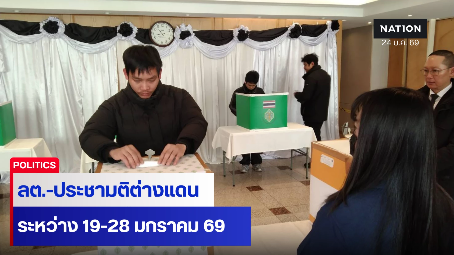 สอท.-สกญ.ไทยในต่างประเทศ ทยอยเปิดใช้สิทธิกาบัตรต่างแดน 19-28 ม.ค.69 ก่อนส่งบัตรเลือกตั้ง สส.กลับไทยนับหน้าหน่วย-บัตรประชามตินับที่สถานทูต 8 ก.พ.นี้