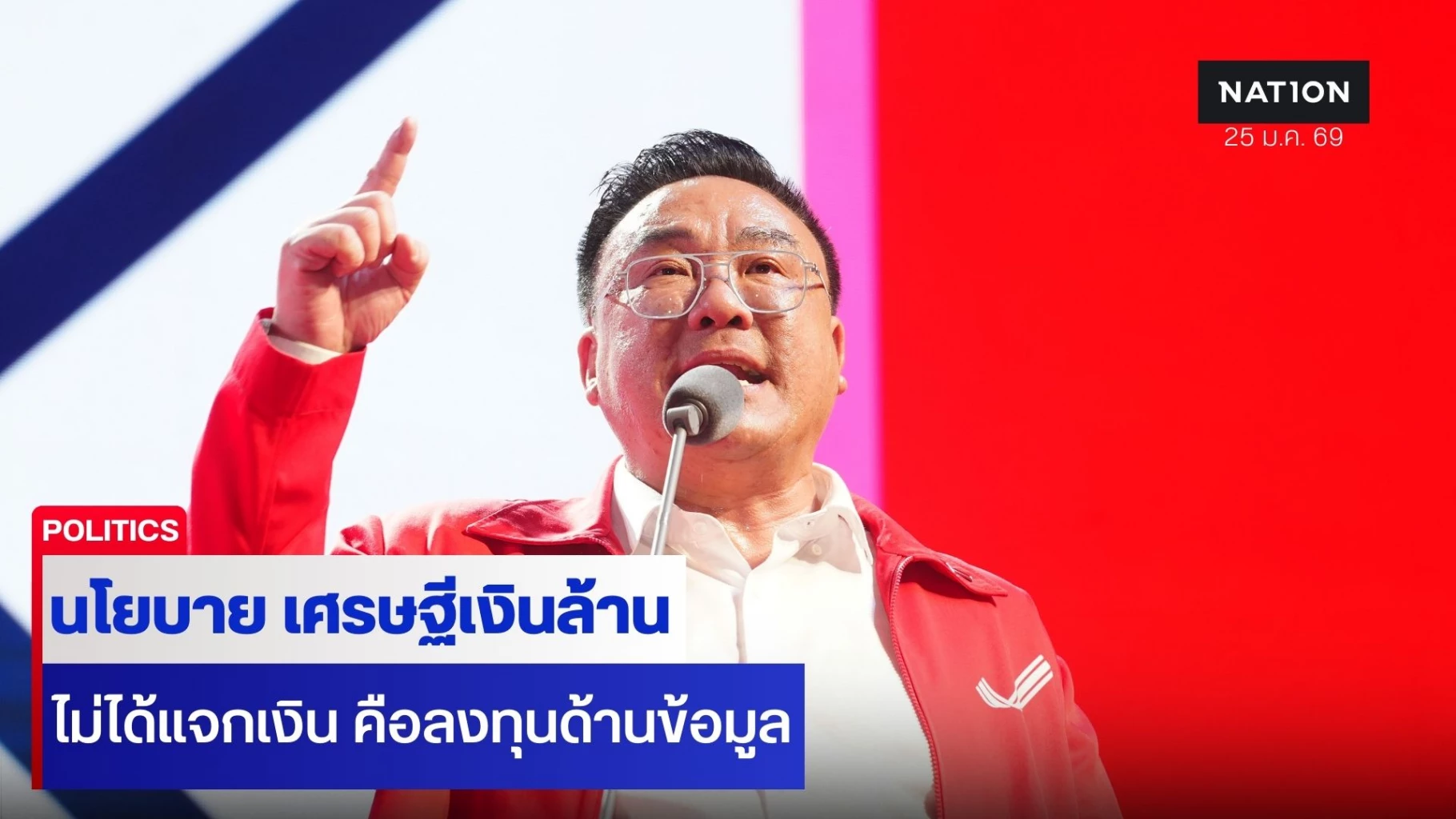 "จุลพันธ์" โต้ข่าวแจกเงิน ยันนโยบาย "เศรษฐีเงินล้าน" คือการลงทุนด้านข้อมูล ดึงเศรษฐกิจนอกระบบ 9 ล้านล้านเข้าฐานภาษี เปรียบลงทุนหลักพันล้าน ได้คืนแสนล้าน