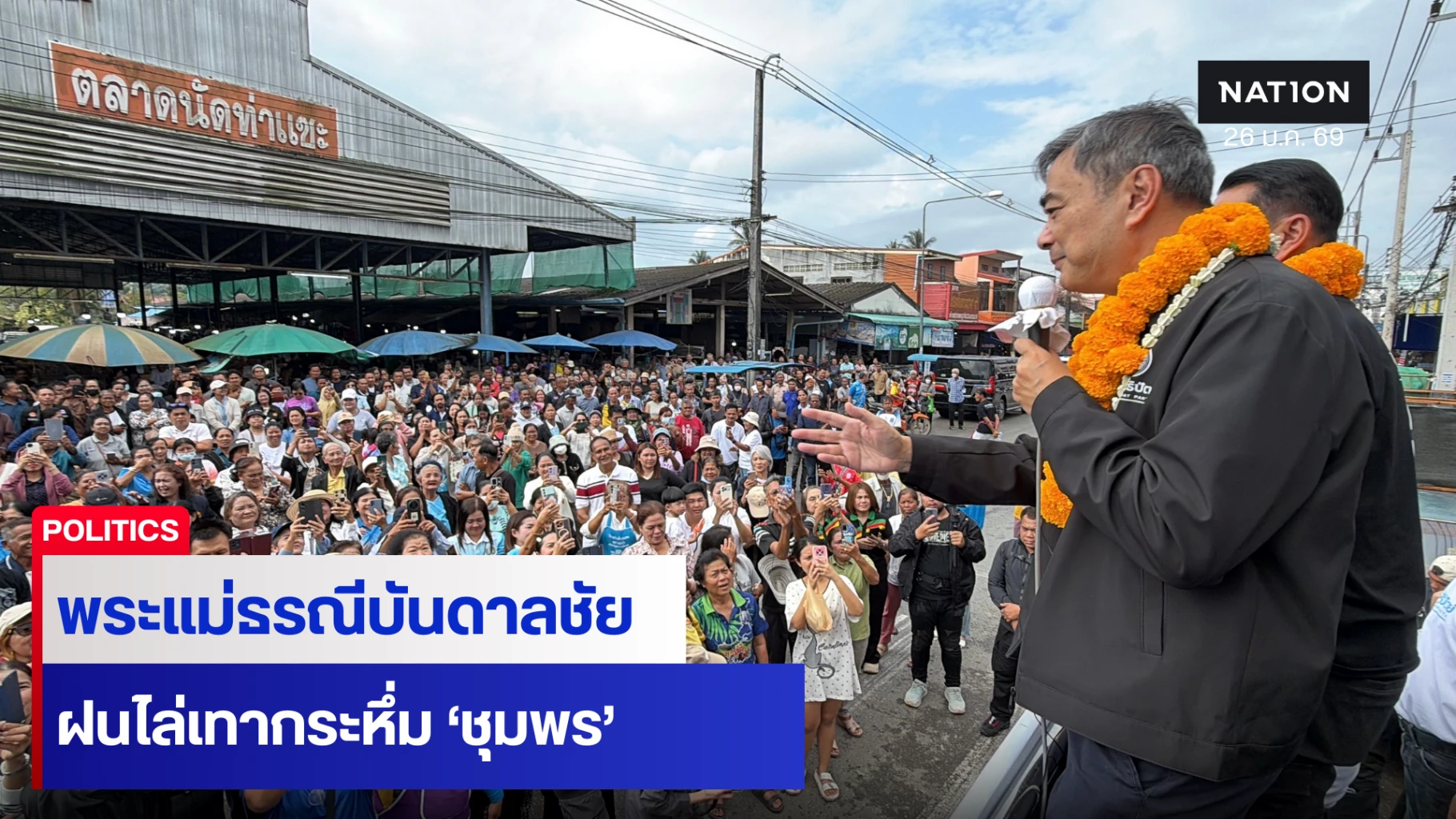 "อภิสิทธิ์" บุก "ชุมพร" FC แห่ต้อนรับกระหึ่มท่าแซะ - โว! "พระแม่ธรณี" บันดาลชัย-บีบน้ำไล่เทาฝนหยุดตกทันตาเห็น