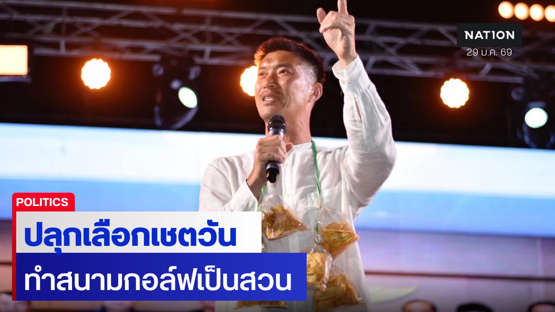 29 มกราคม 2569 มีรายงานว่า เมื่อช่วงค่ำวานนี้ (28 ม.ค.) ที่ จ.ปทุมธานี นายธนาธร จึงรุ่งเรืองกิจ ผู้ช่วยหาเสียงพรรคประชาชน ร่วมปราศรัยบนเวที “ปักธงส้มให้เต็มปทุมธานี” โดยเริ่มต้นด้วยการบอกว่า มาถึงปทุมธานีต้องพูดถึงสิ่งที่ตนอยากเห็น โดยหลังจากเลือกตั้งเมื่อปี 2566 สส.ปทุมธานี เข้ามาบอกว่า อยากทำโปรเจกต์การเปลี่ยนสนามกอล์ฟธูปะเตมีย์เป็นสวนสาธารณะ ให้ประชาชนใช้ประโยชน์ เพราะปทุมธานีไม่มีสวนสาธารณะใหญ่ ให้คนออกกำลังกาย สังสรรค์ และมีกิจกรรมทางสังคมร่วมกัน