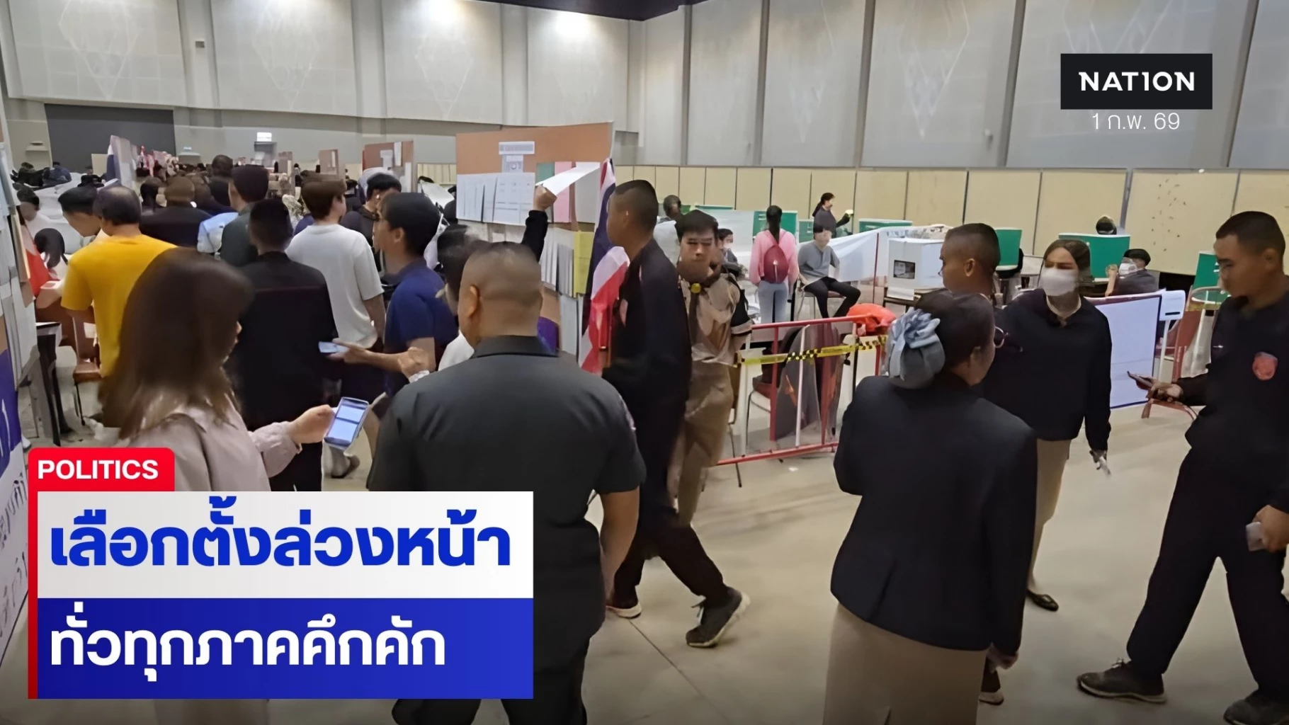 1 กุมภาพันธ์ 2569 เป็นวันเลือกตั้งล่วงหน้า ในการเลือกตั้ง2569 โดยภาพรวมทั่วประเทศพบว่าประชาชนที่ลงทะเบียนเลือกตั้งล่วงหน้าพากันเดินทางไปใช้สิทธิกันอย่างคึกคัก