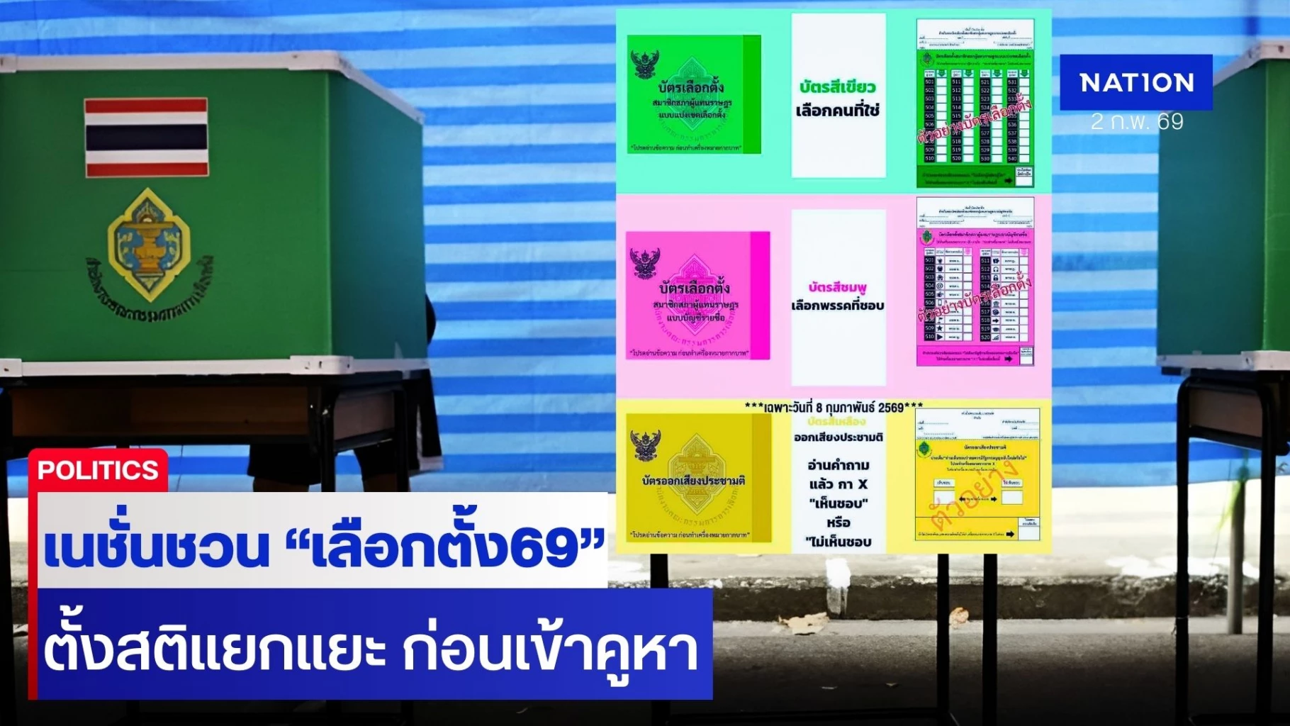 เนชั่นชวน "เลือกตั้ง69" เปิดสูตรคำนวณ "เลือกตั้ง" ควรตั้งสติแยกแยะก่อนเข้าคูหาให้ดี บัตรเลือกตั้ง 2 ใบ บัตรลง "ประชามติแก้ รธน." หรือไม่ อีก 1 ใบ