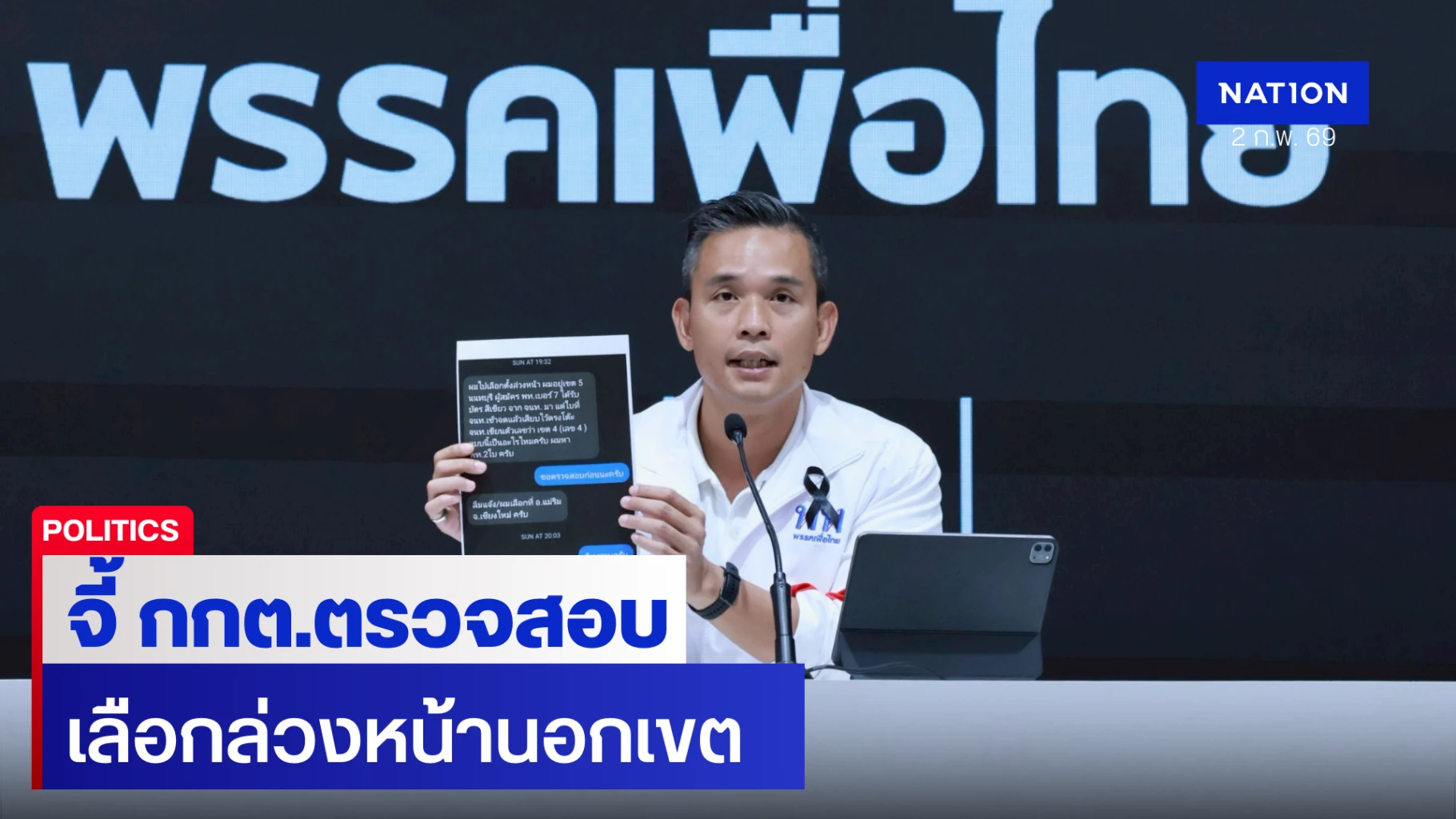 “พรรคเพื่อไทย” จี้ กกต. ตรวจสอบเลือกตั้งล่วงหน้านอกเขต พบพิรุธหลายจุด หวั่นกระทบความสุจริตวันจริง 8 ก.พ.นี้