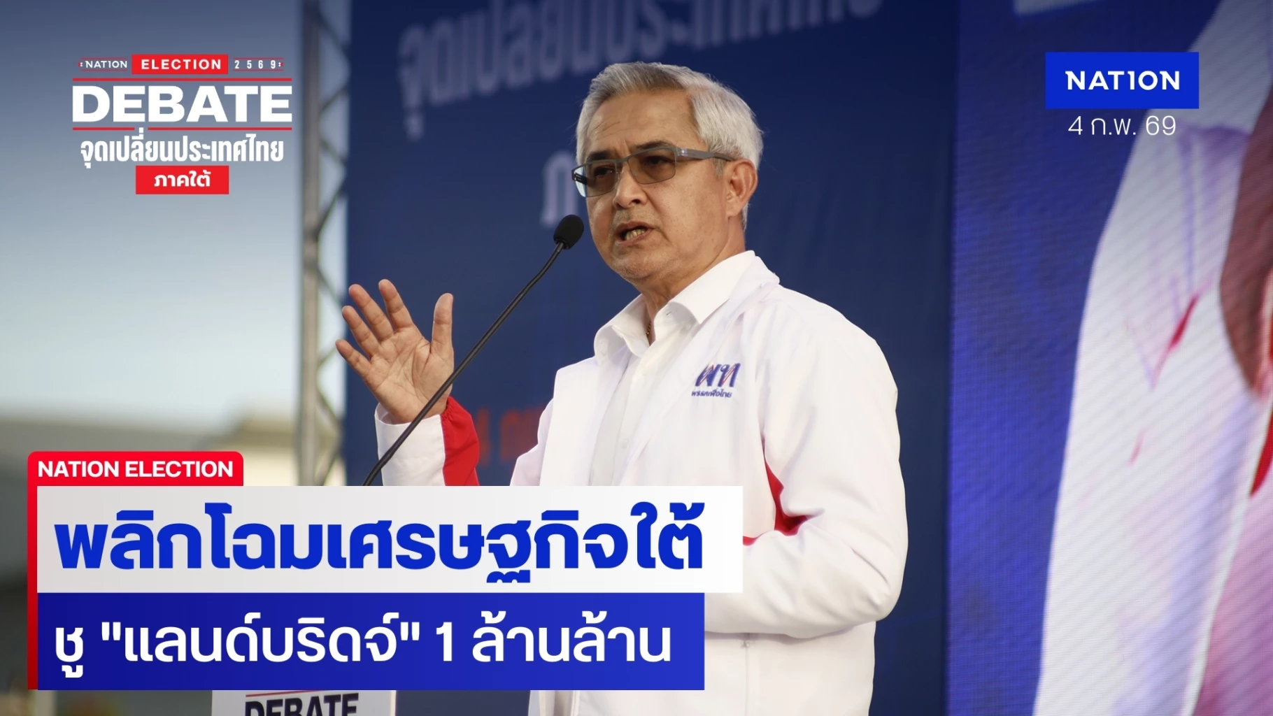 4 กุมภาพันธ์ 2569 ในเวที NATION ELECTION 2569 DEBATE จุดเปลี่ยนประเทศไทย ภาคใต้ ที่สวนสาธารณะ อบจ.สงขลา