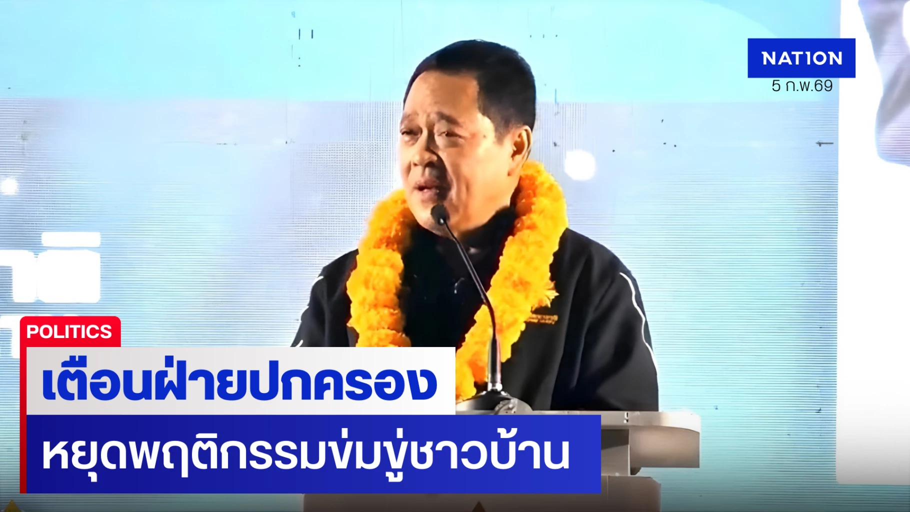 5 กุมภาพันธ์ 2569 หัวหน้าพรรคประชาชาติเปิดเวทีปราศรัยใหญ่ อ.ยะหา ชูนโยบายแก้ปมมรดกความยากจน พร้อมประกาศยุทธศาสตร์การเมืองตั้งเป้า สส. 15 ที่นั่ง หวังคุม มท.-เกษตรฯ-ศึกษาฯ เล็งผลักดัน 'พ.ร.ก.สันติภาพ' แทนกฎหมายความมั่นคงเดิม จี้เจ้าหน้าที่รัฐวางตัวเป็นกลาง หลังพบสัญญาณบิดเบือนการเลือกตั้ง