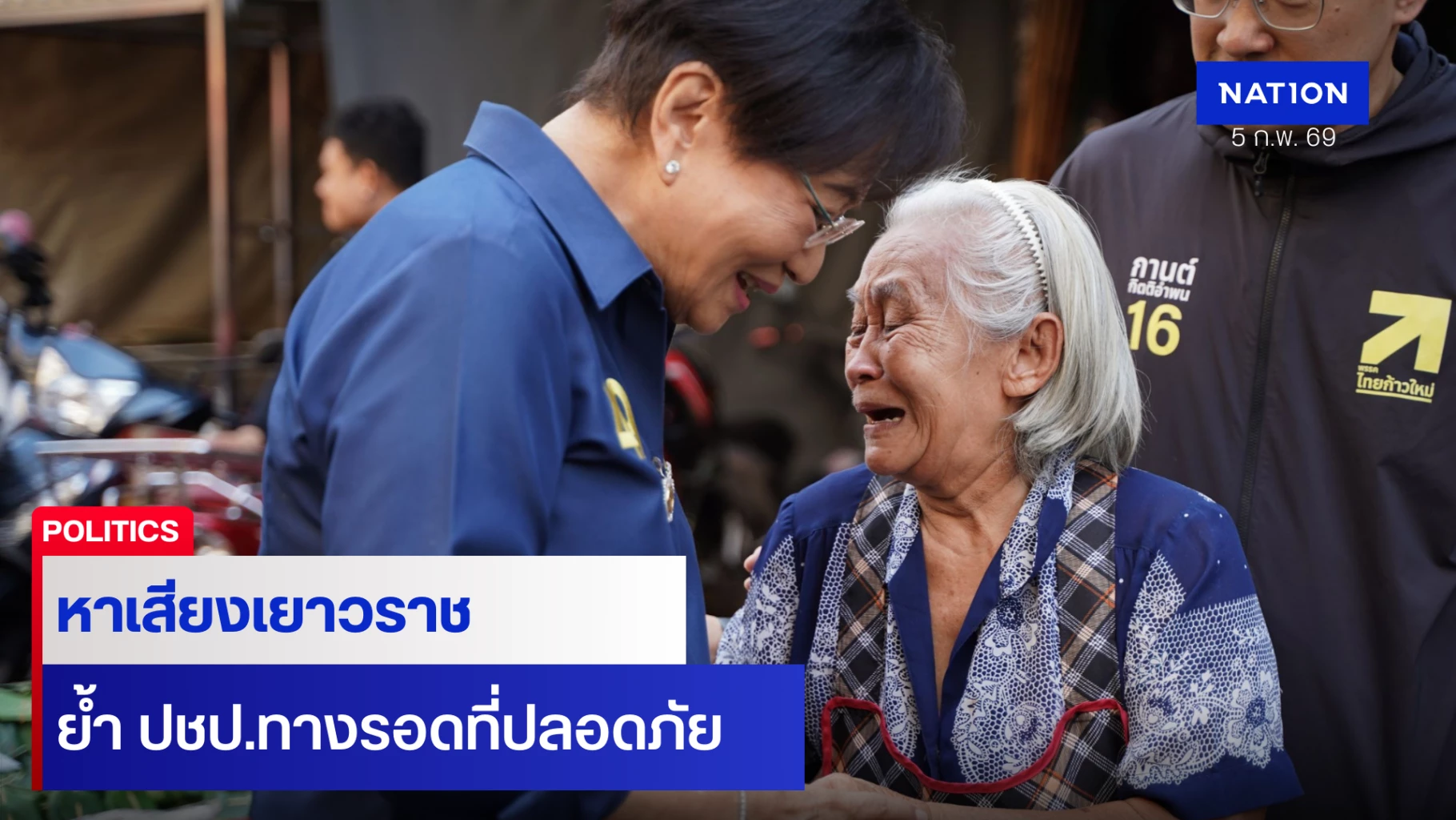 คุณหญิงกัลยา เดินหาเสียงต่อโดยข้ามจากตลาดเก่ามาฝั่งตรงข้ามเพื่อเดินต่อไปยังสำเพ็ง ระหว่างทางพบกับยายแป๋ว อายุ 78 ปี ซึ่งขายขนมรถเข็นอยู่ในพื้นที่ ยายแป๋วได้โผเข้ากอด คุณหญิงกัลยา ทั้งน้ำตา พร้อมอวยพรให้ คุณหญิงกัลยา ได้เข้าไปทำหน้าที่สภาฯ มั่นใจว่าคุณงามความดีและความซื่อสัตย์สุจริตของ คุณหญิงกัลยา ที่ทำมาตลอดจะนำพาประเทศไทยให้เจริญรุ่งเรืองได้แน่นอน