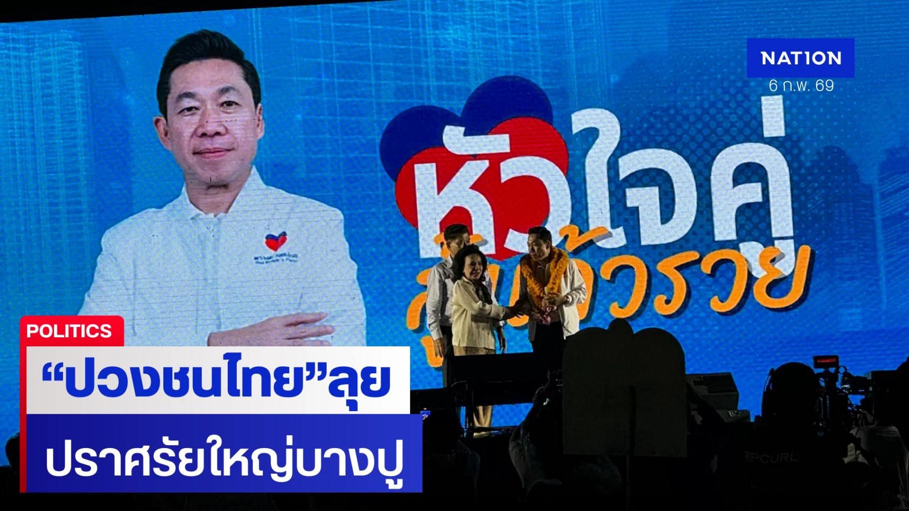บรรยากาศเวทีปราศรัยใหญ่โค้งสุดท้ายก่อนการเลือกตั้งของ พรรคปวงชนไทย ที่เคซิตี้ บางปู เมืองใหม่ จังหวัดสมุทรปราการ เมื่อวันที่ 5 กุมภาพันธ์ 2569 เป็นไปอย่างคึกคัก โดยมีประชาชนเข้าร่วมรับฟังการปราศรัยประมาณ 3,000 คน เต็มพื้นที่ลานกิจกรรม ท่ามกลางการนำเสนอนโยบายด้านเศรษฐกิจและคุณภาพชีวิตของประชาชน