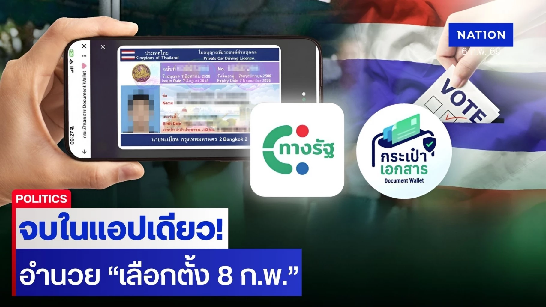 💼ใช้ใบขับขี่ดิจิทัล บนบริการ ‘กระเป๋าเอกสาร’ ยืนยันตัวตนใช้สิทธิเลือกตั้งได้
