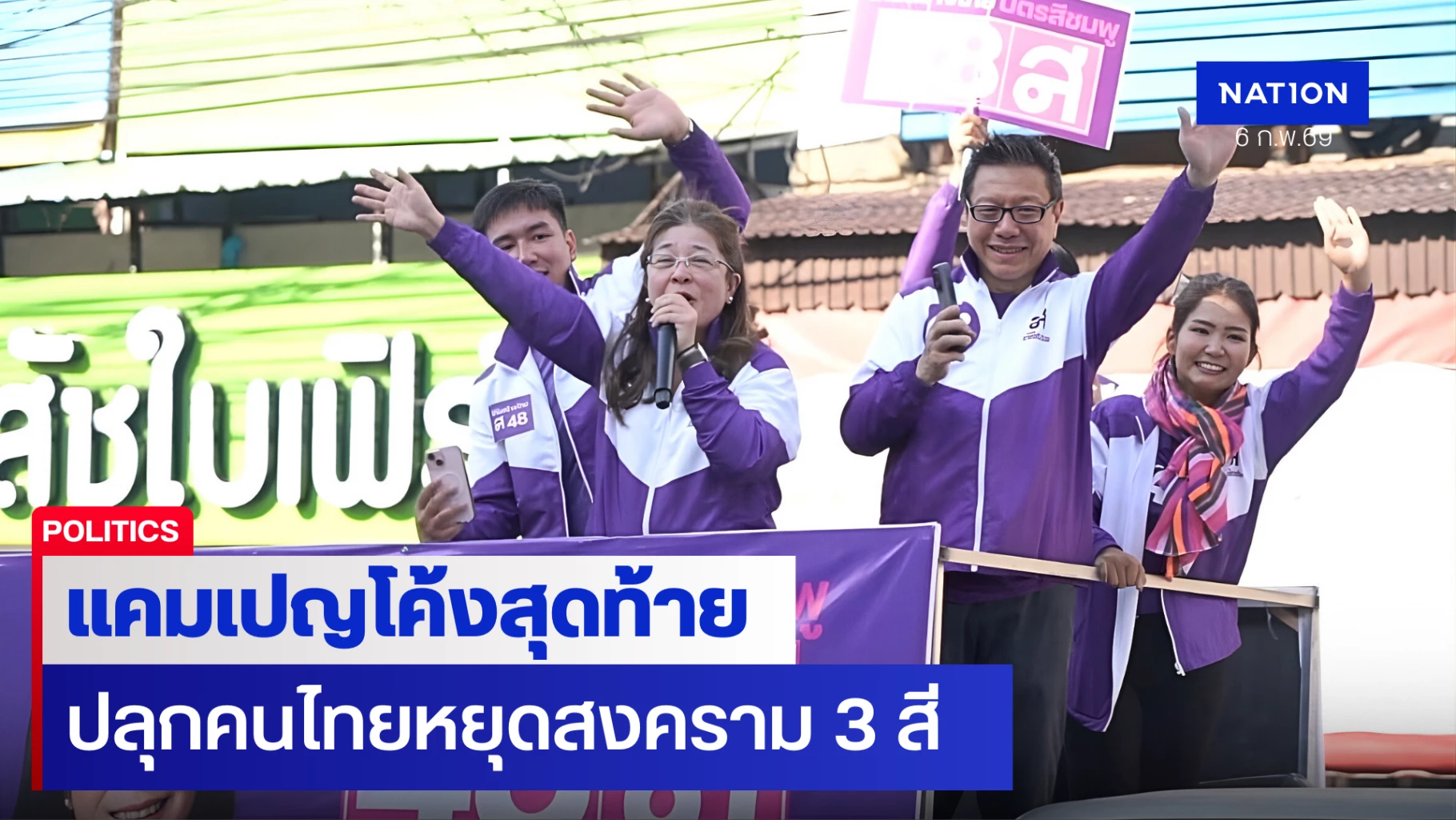 6 กุมภาพันธ์ 2569 เมื่อเวลา 08.30 น. ที่ตลาดภายในเขตเทศบาลนครขอนแก่น คุณหญิงสุดารัตน์ เกยุราพันธุ์ หัวหน้าพรรคไทยสร้างไทยและแคนดิเดตนายกรัฐมนตรี พรรคไทยสร้างไทย เบอร์ 48 พร้อมด้วยนายสุรเดช ทวีแสงสกุลไทย ประธานคณะกรรมการยุทธศาสตร์เศรษฐกิจ พรรคไทยสร้างไทย และผู้สมัคร สส.ขอนแก่น พรรคไทยสร้างไทย ร่วมกันขึ้นรถแห่ปราศรัยนโยบายของพรรค และหาเสียงเลือกตั้งในช่วงโค้งสุดท้ายก่อนวันเลือกตั้งในวันอาทิตย์นี้