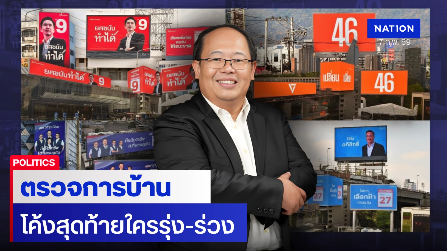 7 กุมภาพันธ์ 2569 รศ.ดร.ยุทธพร อิสรชัย อาจารย์รัฐศาสตร์ มหาวิทยาลัยสุโขทัยธรรมาธิราช ประเมินการแข่งขันโค้งสุดท้ายของบรรดาพรรคการเมืองใหญ่ ในช่วง “ปราศรัยปิดเวทีรอบสุดท้าย” ก่อนเลือกตั้ง