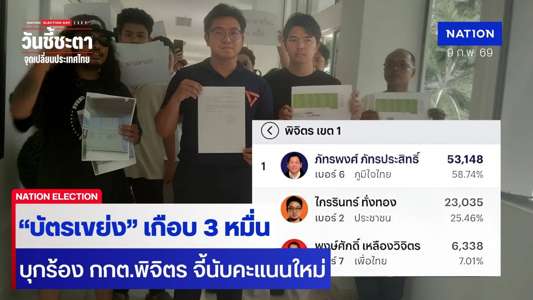 เลือกตั้งพิจิตรเจอ "บัตรเขย่ง" เกือบ 3 หมื่น "ผู้สมัคร สส.พรรคส้ม-เยาวชน" บุกร้อง กกต.จี้นับคะแนนเขตเลือกตั้งเขต 1 ใหม่