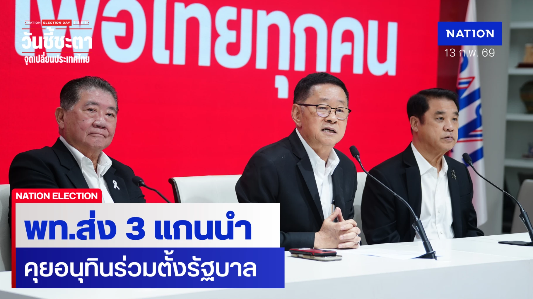 "เพื่อไทย" ส่ง 3 แกนนำ “ประเสริฐ-ภูมิธรรม-สุริยะ” คุย “อนุทิน” หลัง “ภูมิใจไทย” เชิญร่วมรัฐบาล ยันเปิดกว้างคุย-ไร้เงื่อนไข พร้อมจี้ กกต. เคลียร์ปมต่างๆ โดยเร็ว