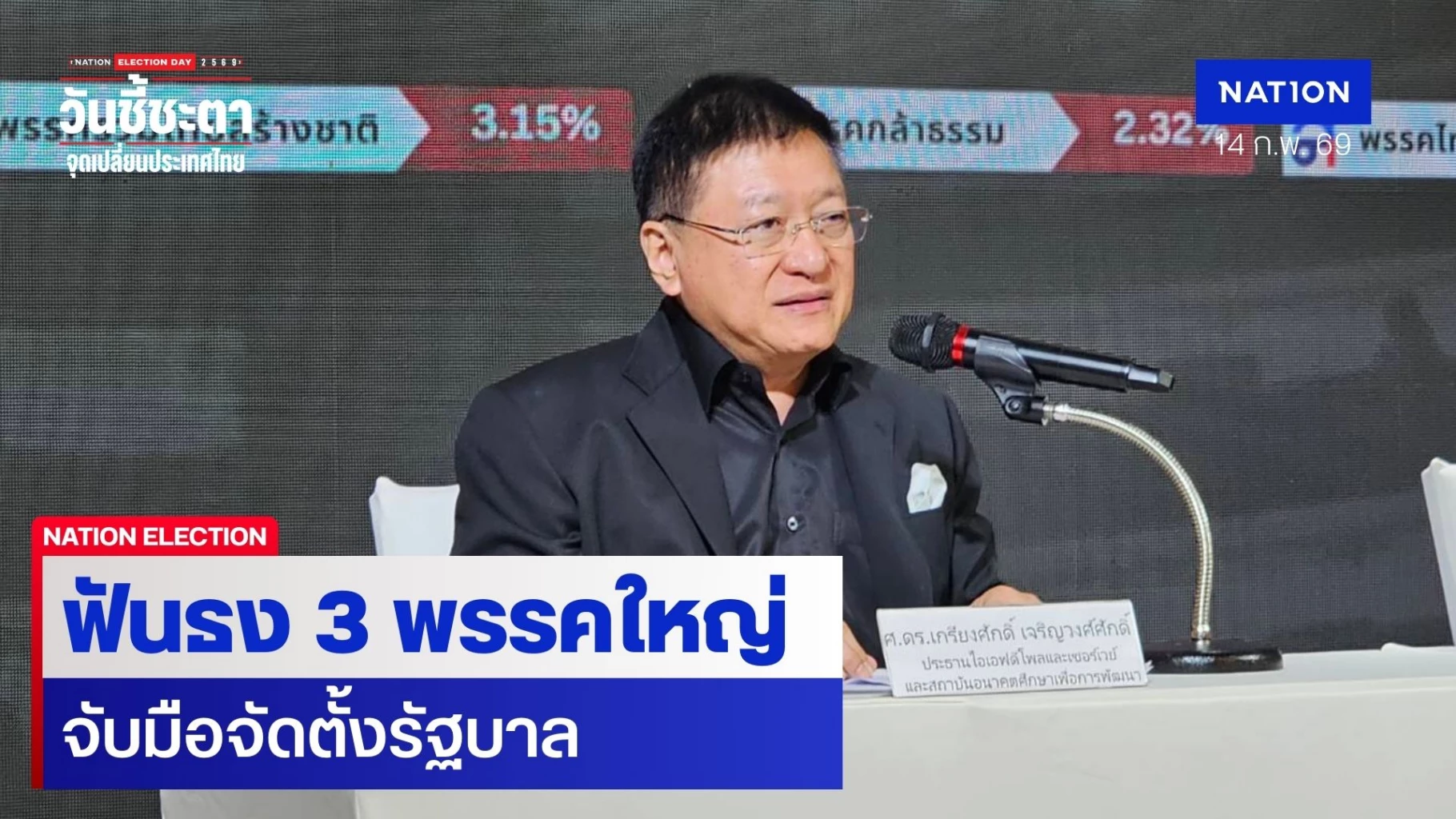 14 กุมภาพันธ์ 2569 ศ.ดร.เกรียงศักดิ์ เจริญวงศ์ศักดิ์ นักวิชาการอาวุโส มหาวิทยาลัยฮาร์วาร์ด ประธานสถาบันการสร้างชาติ และสถาบันอนาคตศึกษาเพื่อการพัฒนา กล่าวว่า เคยให้สัมภาษณ์สื่อไว้ก่อนหน้านี้หลายครั้ง รวมถึงในการแถลงผลสำรวจความคิดเห็นประชาชนของไอเอฟดีโพล และเนชั่นโพล ก็ใกล้เคียงมากที่สุดกับผลการเลือกตั้ง2569 ที่ออกมา ครั้งนี้มีเพื่อนนักการเมืองพูดเป็นเสียงเดียวกันว่า เป็นการเมืองที่ใช้เงินมากที่สุดตั้งแต่ยุคที่เคยเห็นมา หมายความว่าการชนะกันมาจากชนะด้วยกระสุนเป็นหลัก ส่วนจะจับและตรวจสอบได้ หรือไม่ตั้งใจจับก็เป็นเรื่องของคณะกรรมการการเลือกตั้ง (กกต.) ตนไม่ได้กล่าวหา แต่ส่วนตัวคิดว่านักการเมืองที่ดีล้วนแต่ไม่อยากใช้เงิน แต่หลายคนอยากเป็น สส. อยากเป็นรัฐมนตรีก็ต้องยอมจำใจที่จะใช้เงิน เมื่อการเมืองเป็นแบบนี้ มองว่า การเมืองไทยยังคงไปไม่ถึงการเมืองในฝันที่คาดหวังไว้ จึงขอทำสถาบันการสร้างชาติเพื่อช่วยทุกฝ่ายที่เป็นคนดีให้เข้าสู่อำนาจรัฐให้ได้ และไม่เป็นศัตรูหรือแย่งอำนาจใคร เราพยายามช่วยชาติในลักษณะนี้มาโดยตลอด