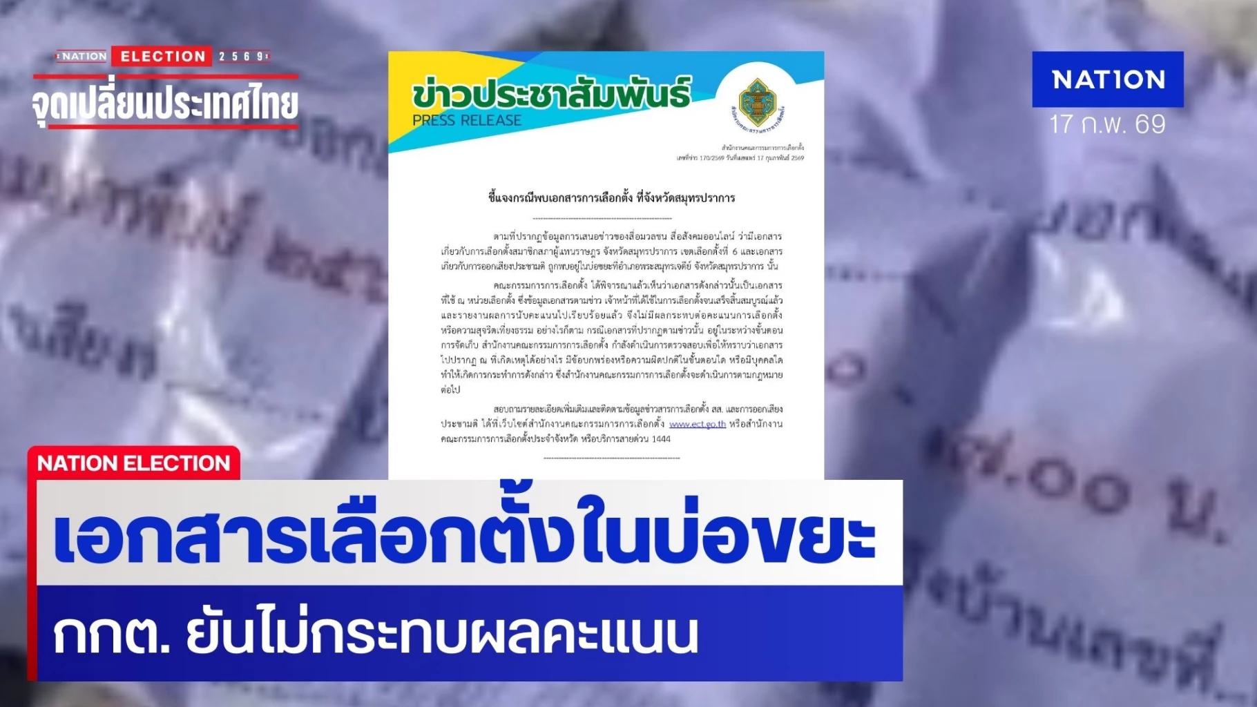 "กกต."แจง เอกสารขีดคะแนน ถูกพบที่บ่อขยะ สมุทรปราการ เป็นเอกสารที่ใช้เสร็จแล้ว ไม่มีผลต่อคะแนนเลือกตั้ง พร้อมสอบเพิ่มหาคนทำ