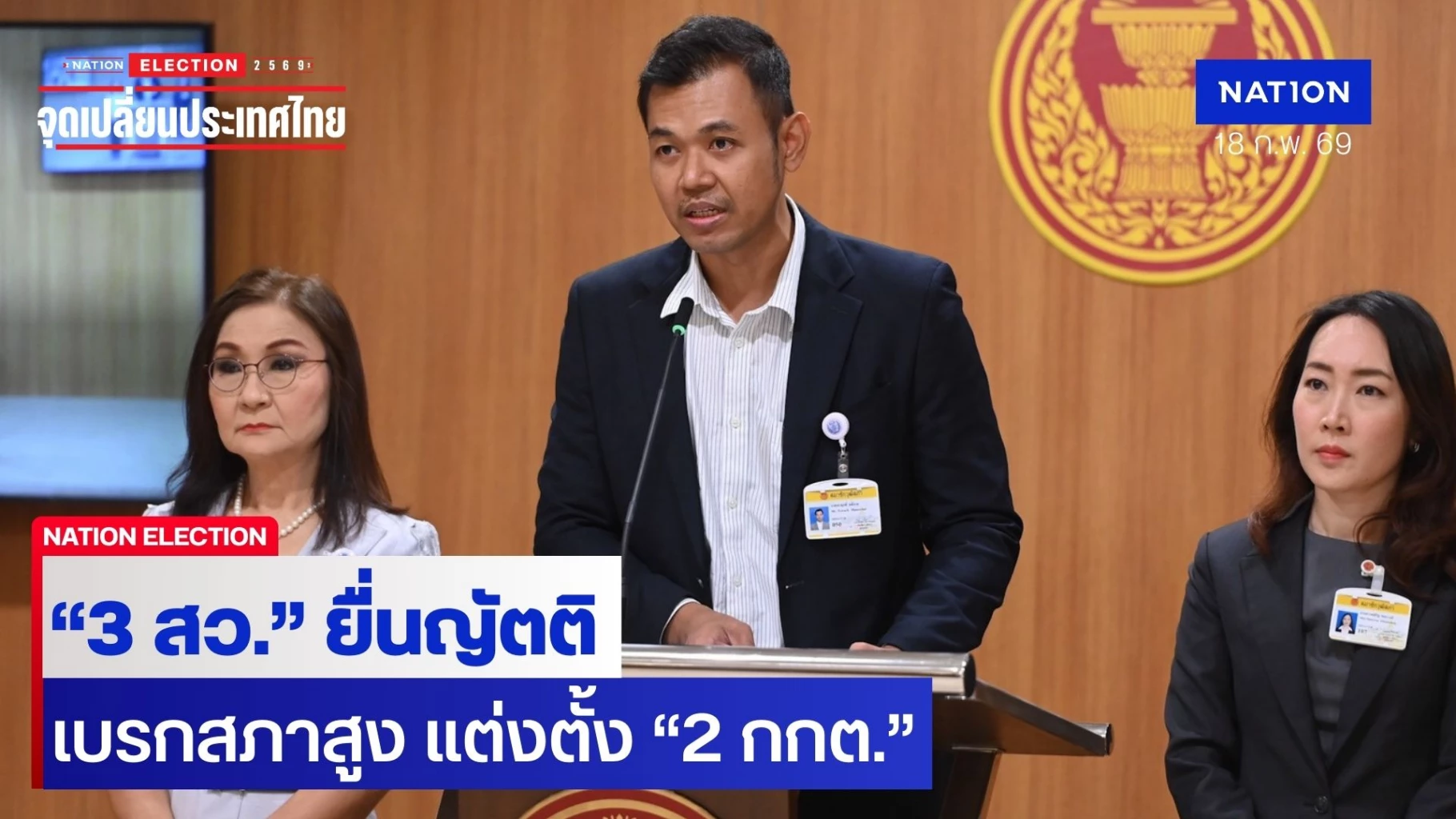 18 กุมภาพันธ์ 2569 ที่รัฐสภา นายเทวฤทธิ์ มณีฉาย น.ส.นันทนา นันทวโรภาส และ น.ส.มณีรัตน์ เขมะวงศ์ 3 สมาชิกวุฒิสภา (สว.) ร่วมแถลงข่าวปมดังกล่าวว่า