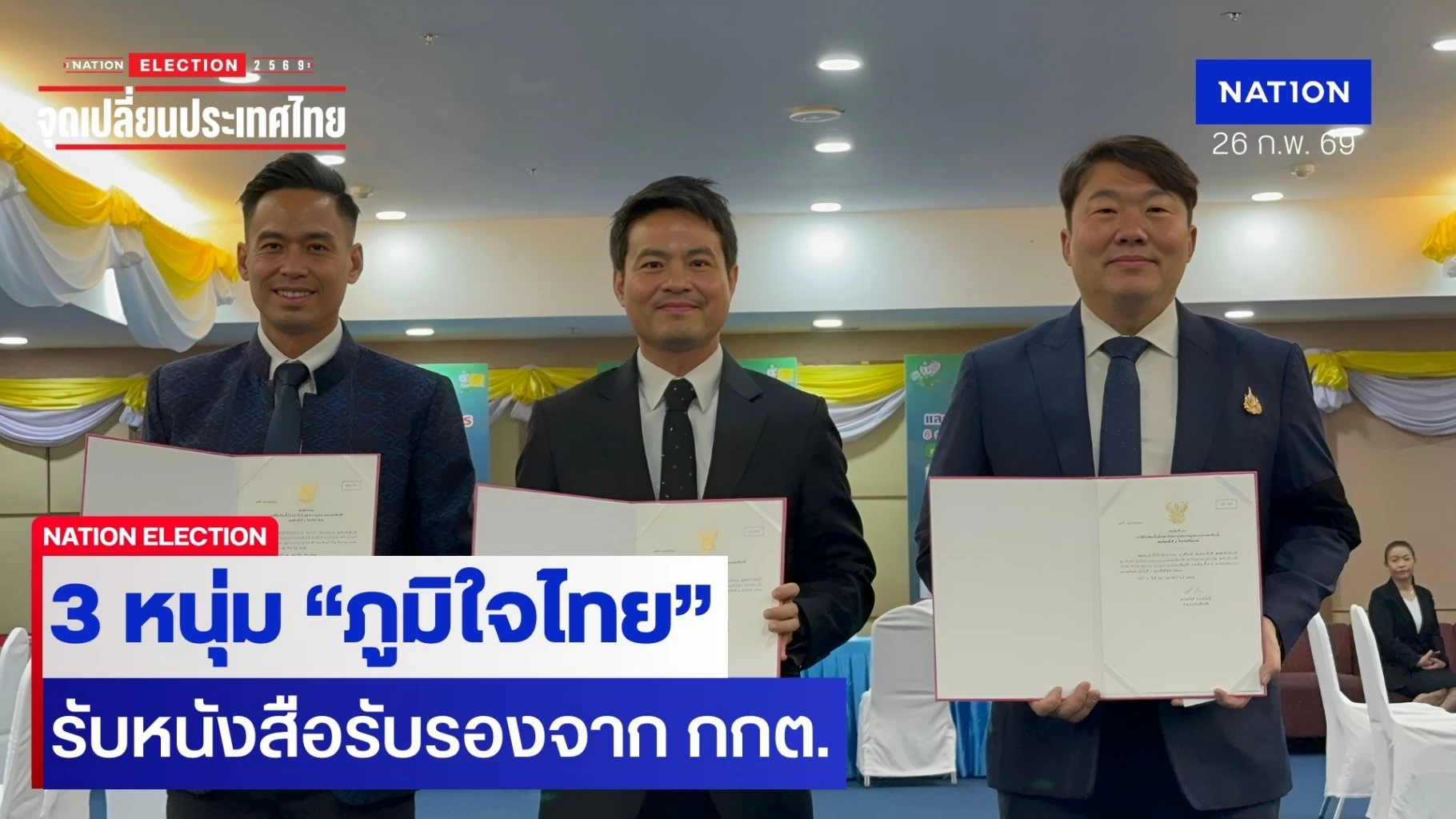 3 หนุ่ม ภูมิใจไทย "โต้ง-แบด-แชมป์" รับหนังสือรับรองจาก กกต.
