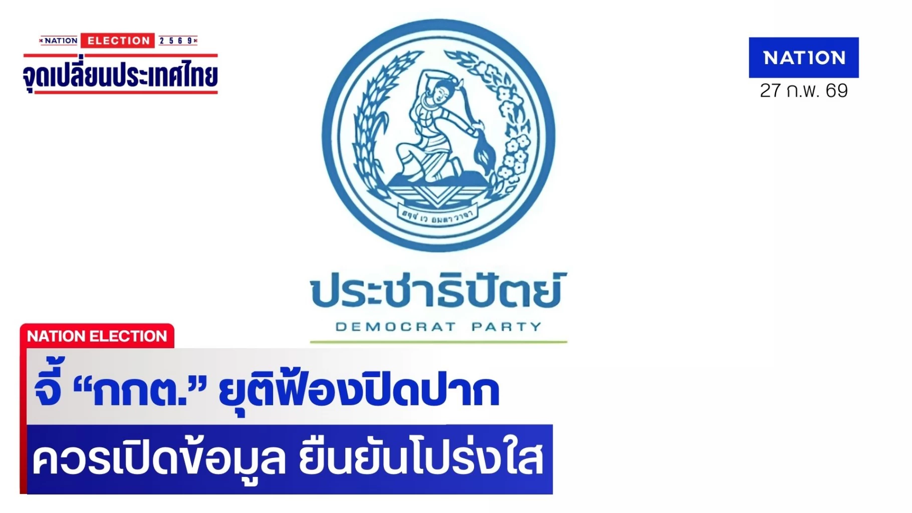 "ประชาธิปัตย์" ออกแถลงการณ์จี้ "กกต." ยุติฟ้องปิดปาก "ปชช." ชี้ทำเกินกว่าเหตุ แนะควรเปิดเผยข้อมูล ยืนยันโปร่งใส