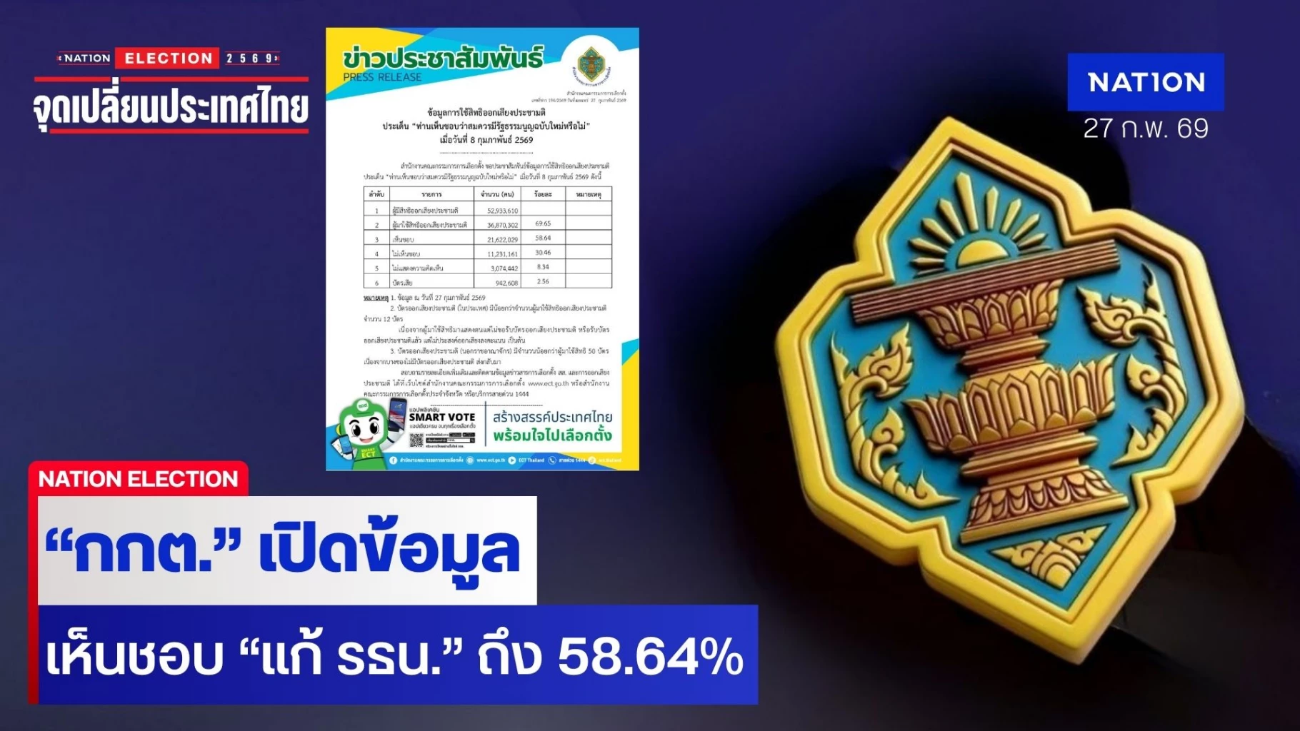 กกต. เปิดข้อมูล "ประชามติแก้ รธน." เห็นชอบ ถึง 21.6 ล้านคน หรือ 58.64% จากผู้มาใช้สิทธิ 36.8 ล้านคน หรือ 69.65%