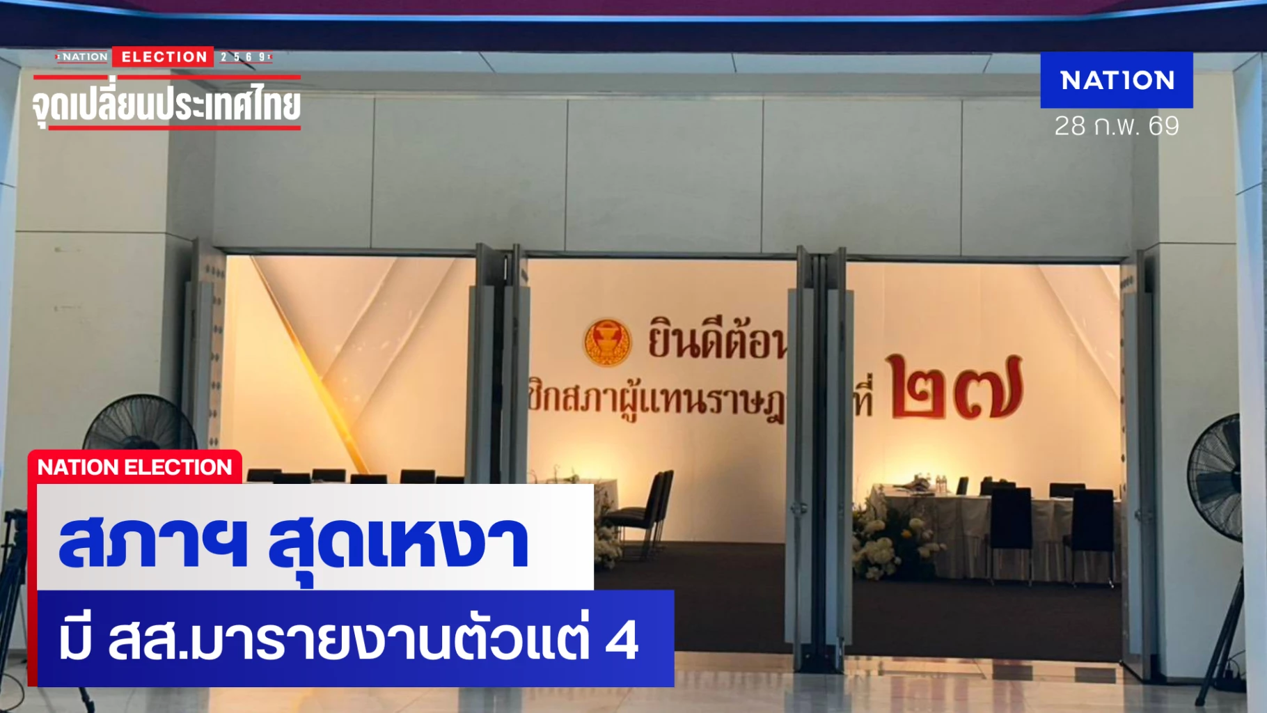 28 กุมภาพันธ์ 2569 ที่อาคารรัฐสภา ผู้สื่อข่าวรายงานว่า สำหรับการรายงานตัวของสมาชิกสภาผู้แทนราษฎร หรือ สส.ชุดที่ 27 ที่เปิดให้รายงานตัวเป็นวันที่ 3 โดยในวันนี้ มี สส.มารายงานตัวเพียง 4 คน จากพรรคภูมิใจไทย จึงทำให้ขณะนี้มี สส.ที่รายงานตัวแล้ว 97 คน จาก 396 คน ยังคงเหลือ 299 คน